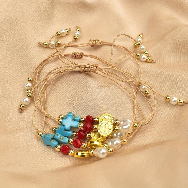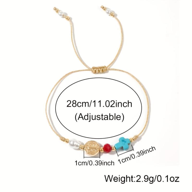 These 5 woven bracelets feature a Latin American Mexican cross design with a retro bohemian style. Perfect for both religious activities and daily wear.