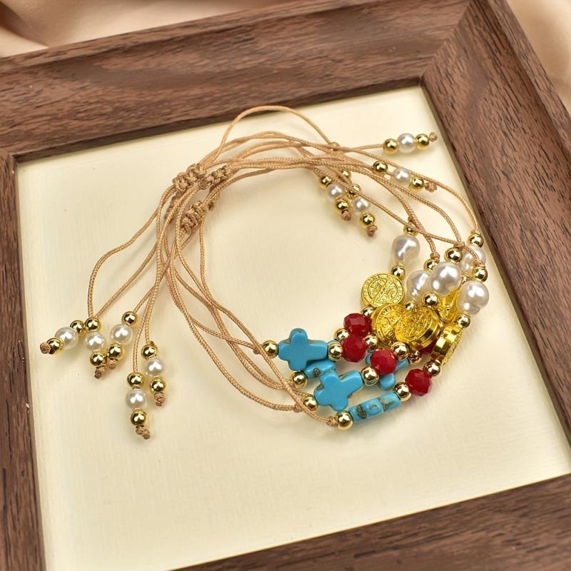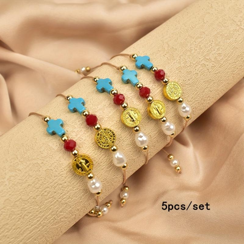 5pcs Women's Woven Bracelets Latin Cross Bohemian Style