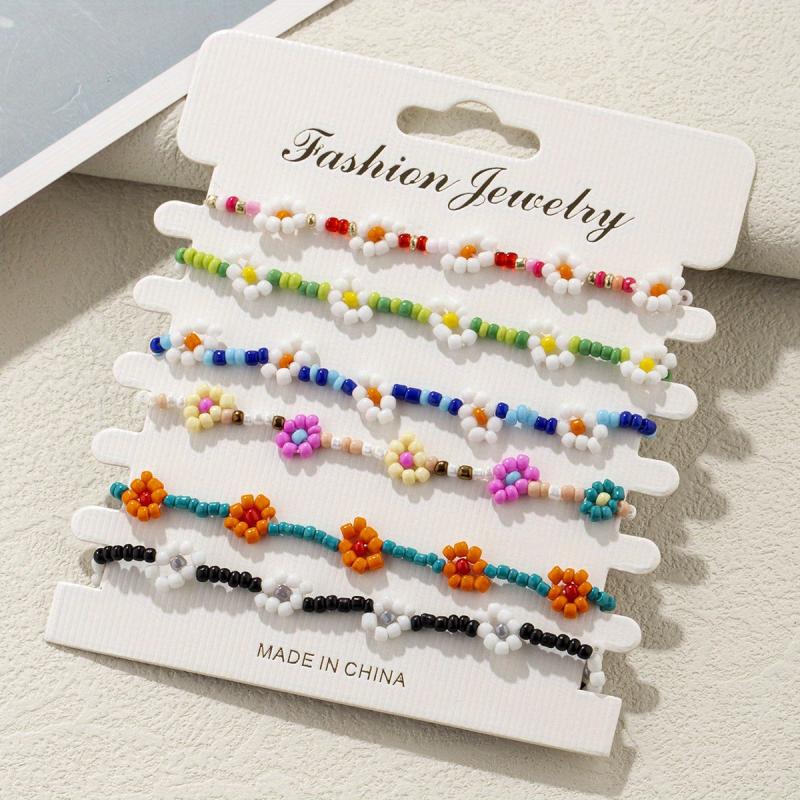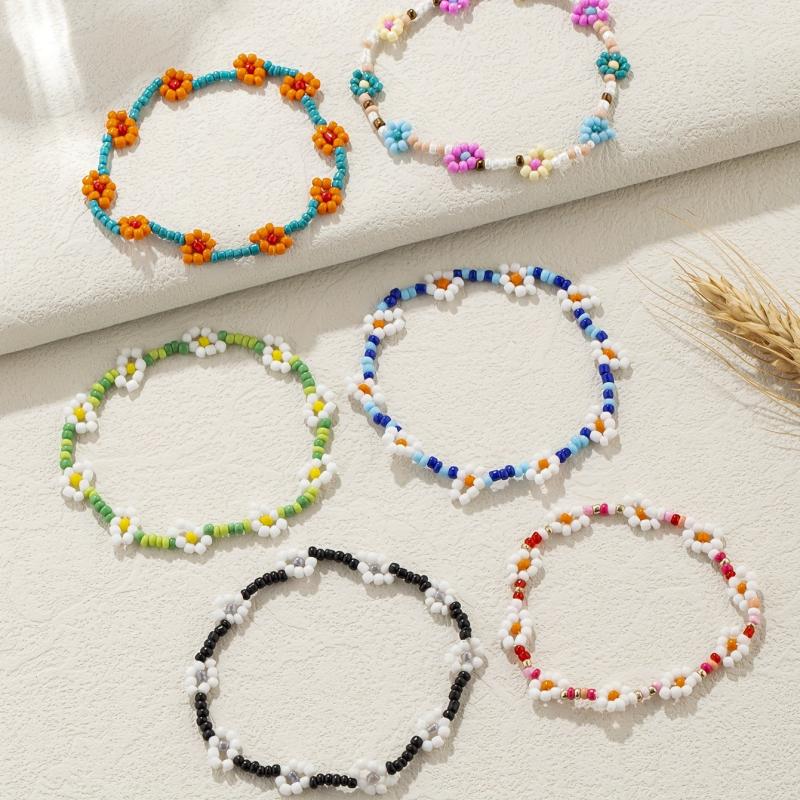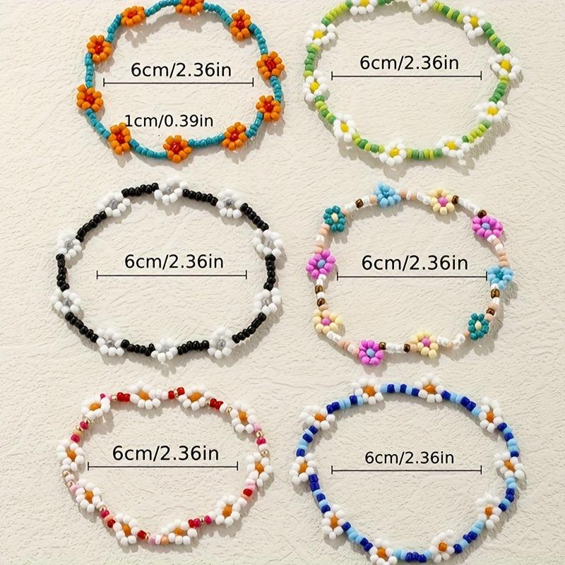 This set includes 6 colorful bracelets with rice bead flower design. Perfect for adding a pop of color to your outfit.