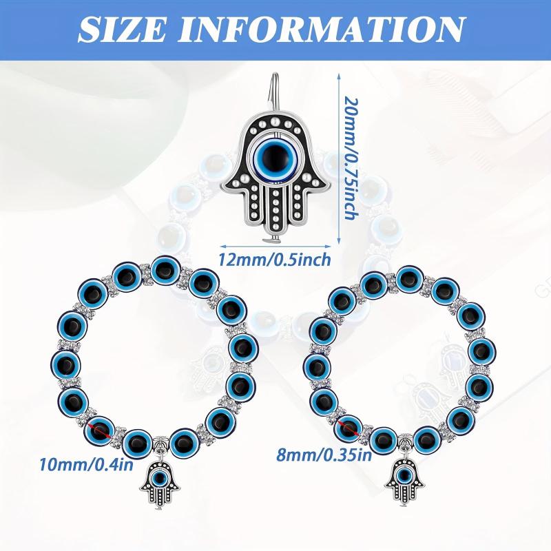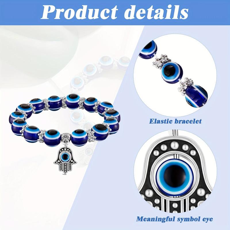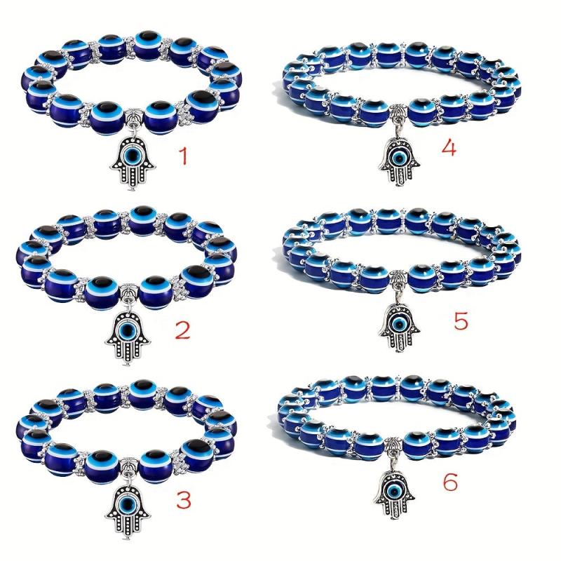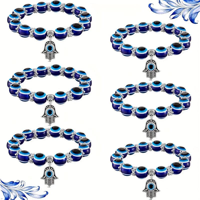6pcs Evil Eye Bracelet Hamsa Beaded Charm Stretch Bracelet Hand of Fatima Lucky