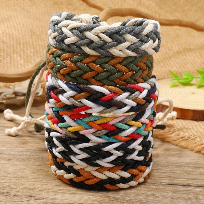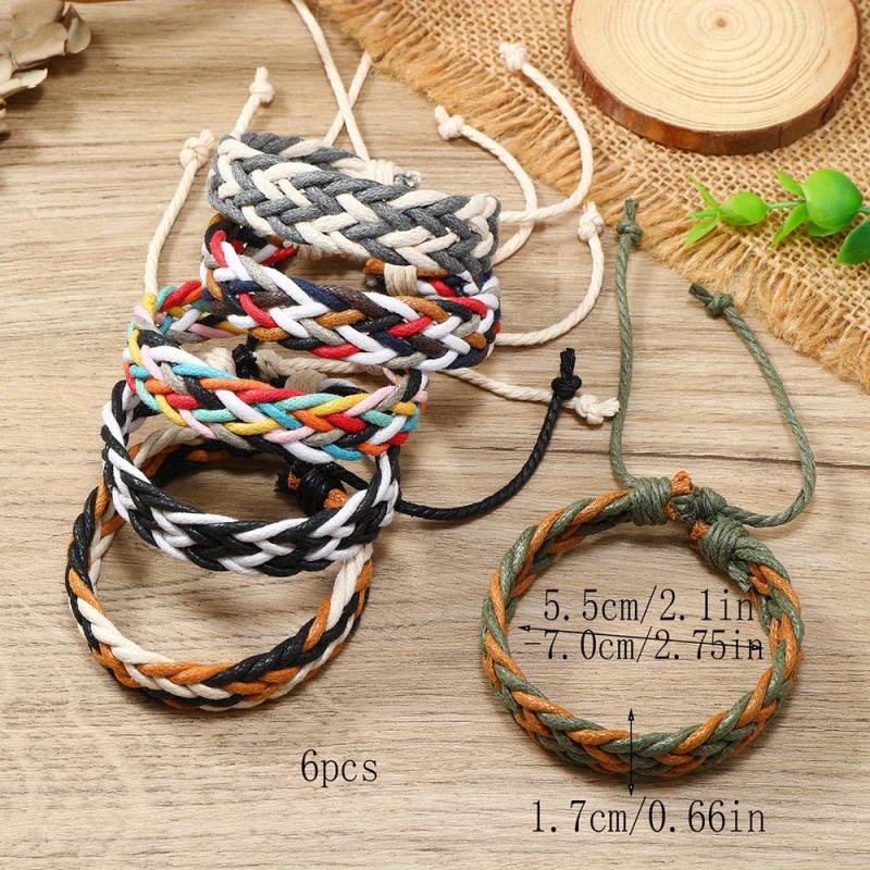 These 6pcs rope bracelets feature a vintage tribal style with ethnic woven design, perfect for daily wear. Made of synthetic fiber, they are versatile accessories to complement any outfit.