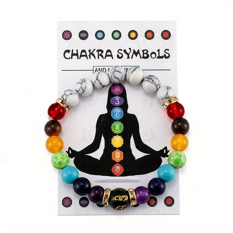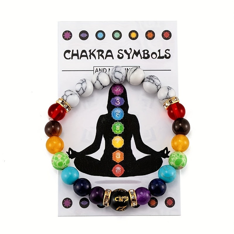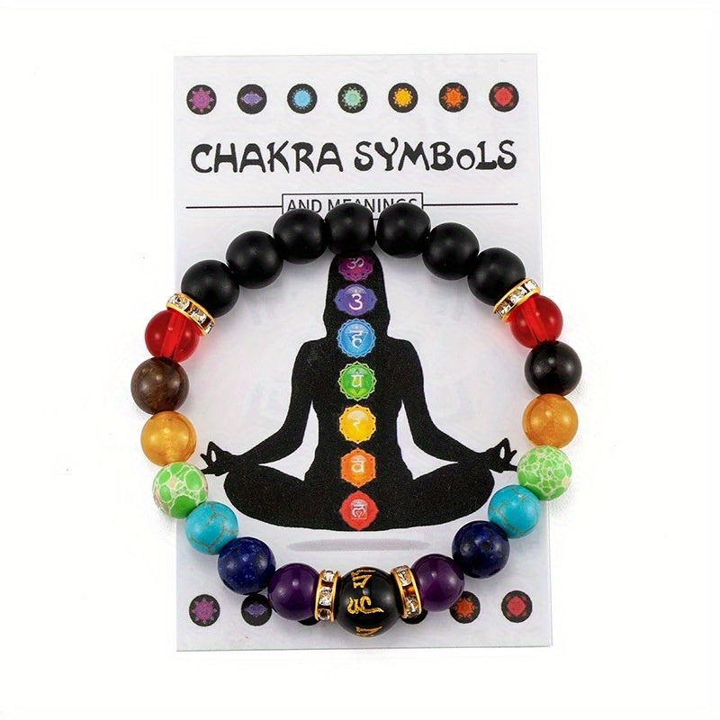 Embrace the healing powers of the 7 chakras with this colorful beaded bracelet. Perfect for stress relief and enhancing your yoga meditation practice.