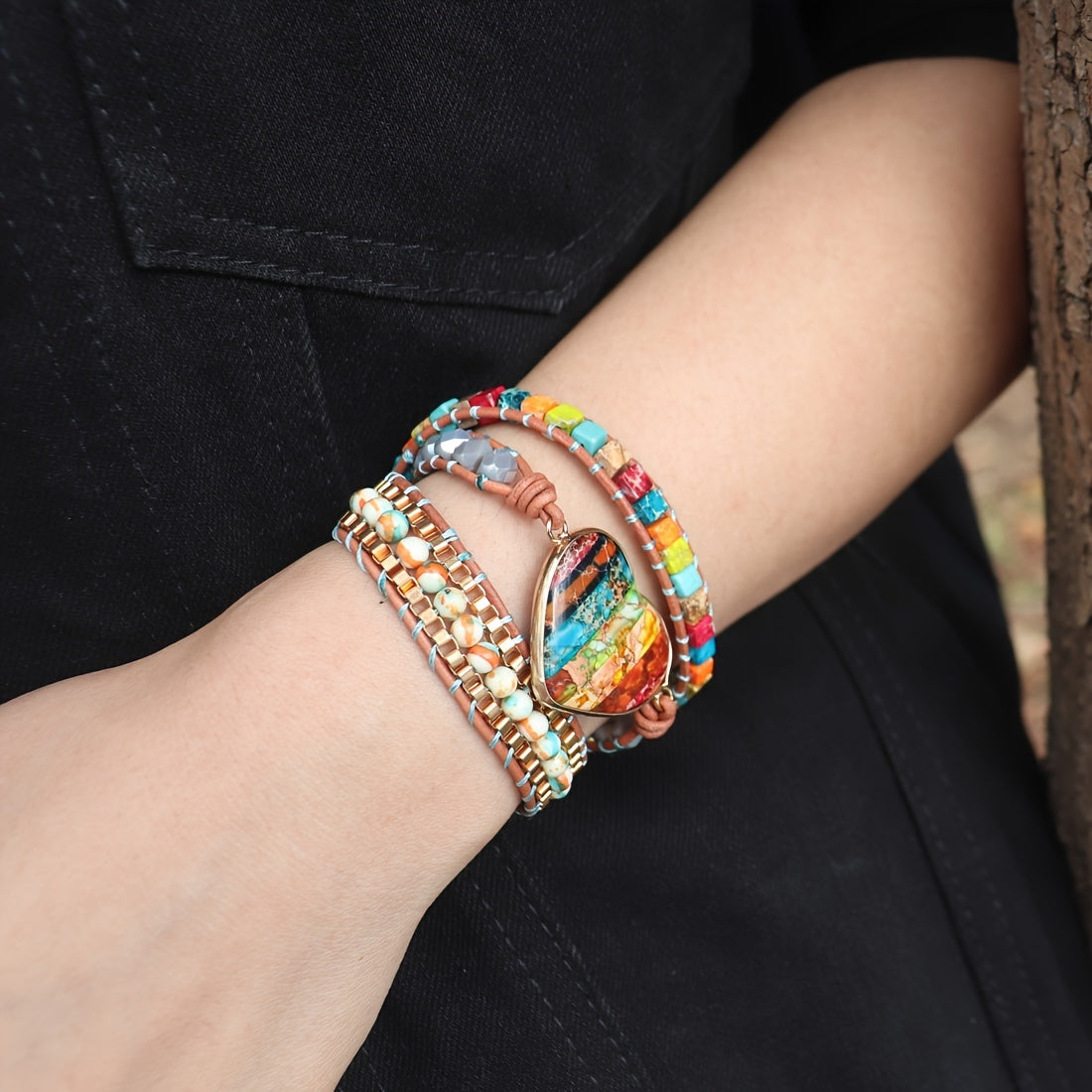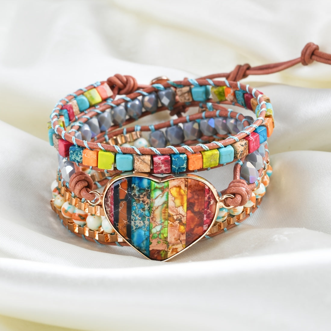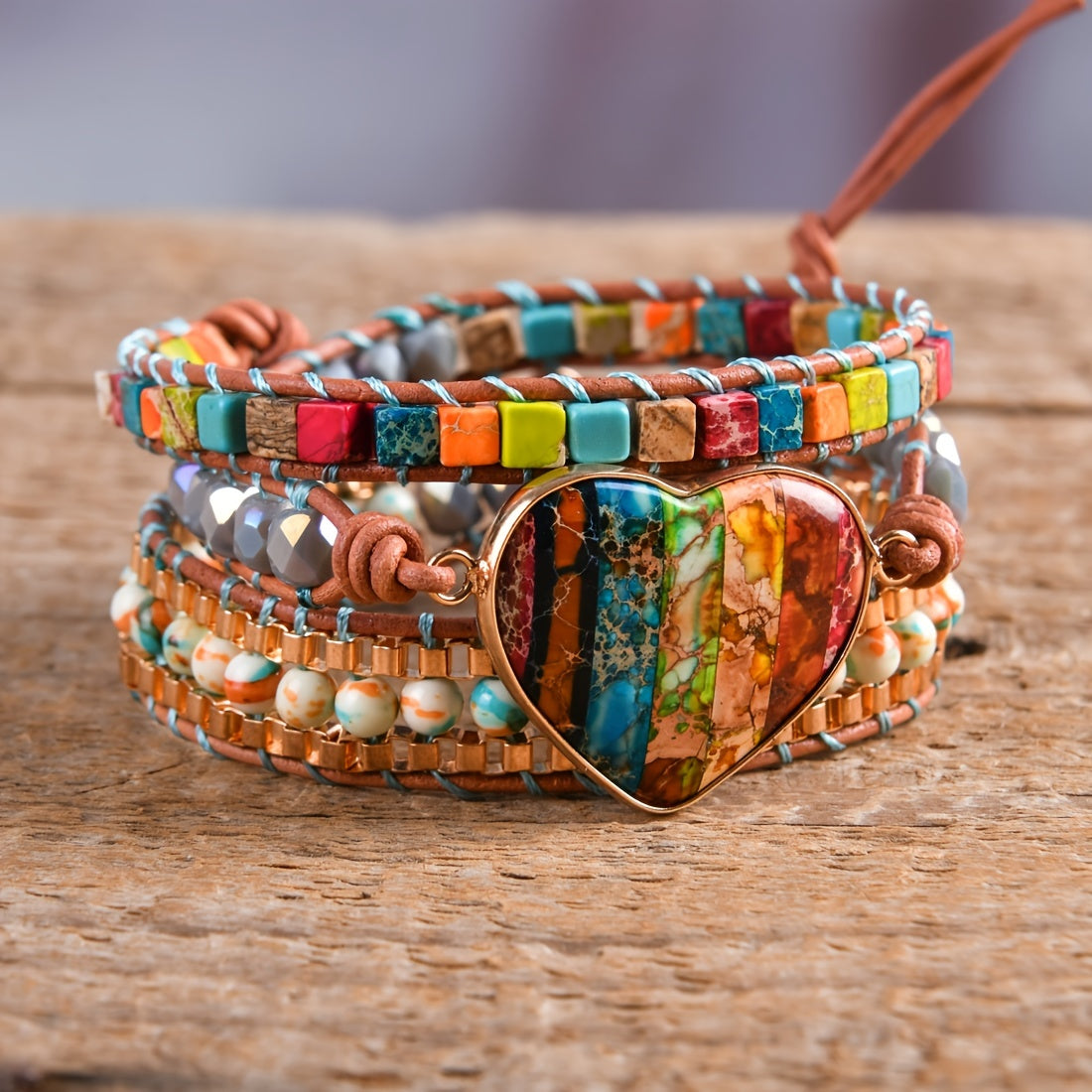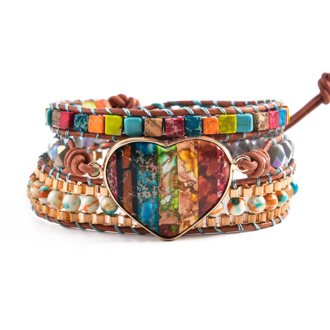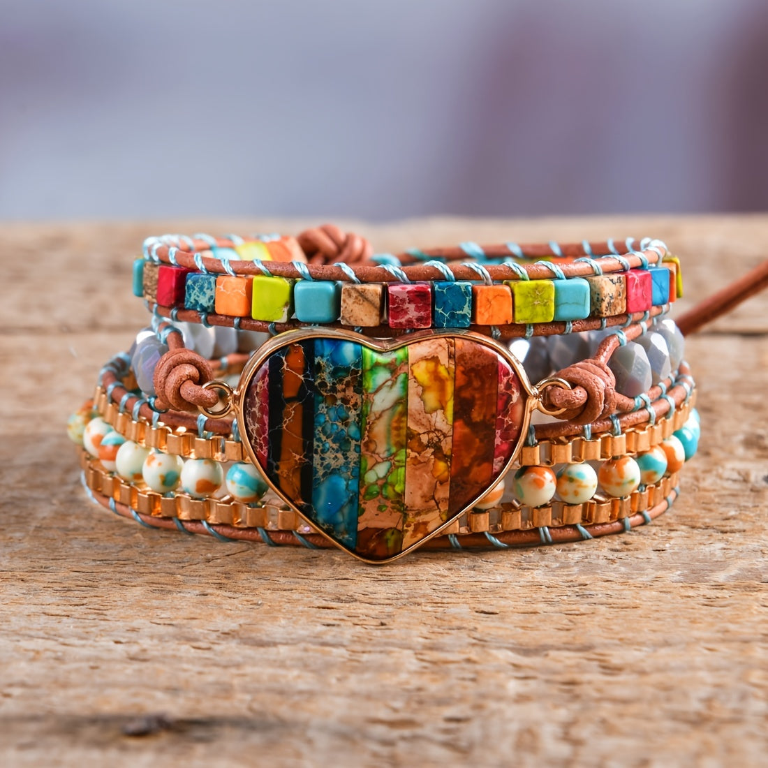 Experience the natural healing power of this 3-strand leather wrap bracelet with chakra gemstones. Achieve spiritual protection and mental health balance during meditation.