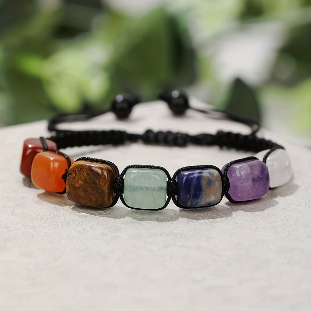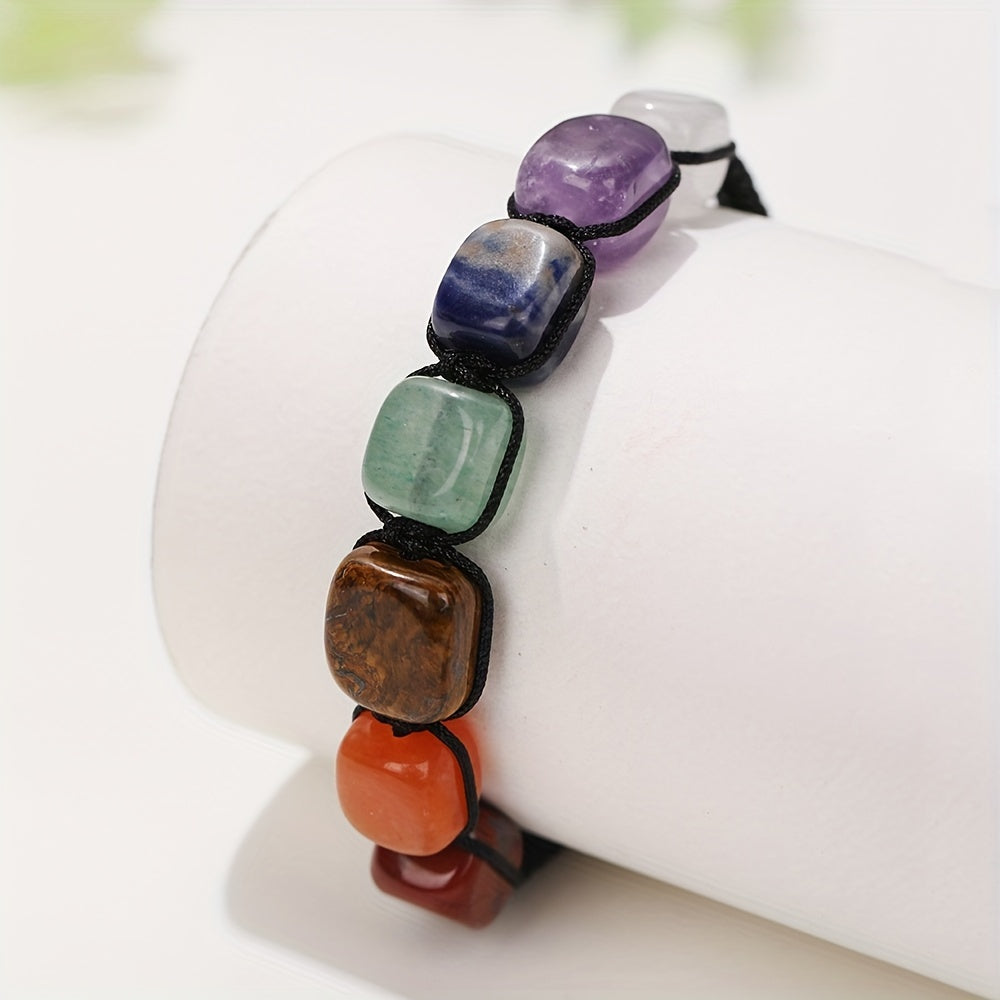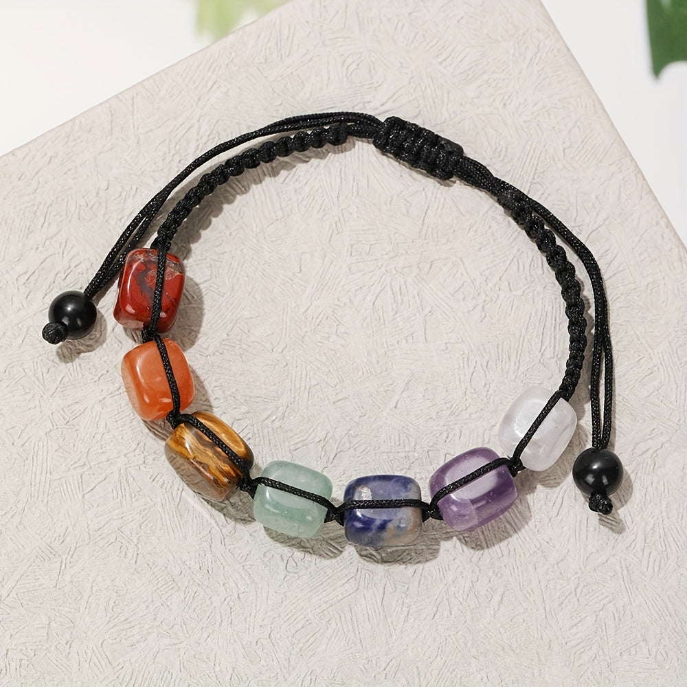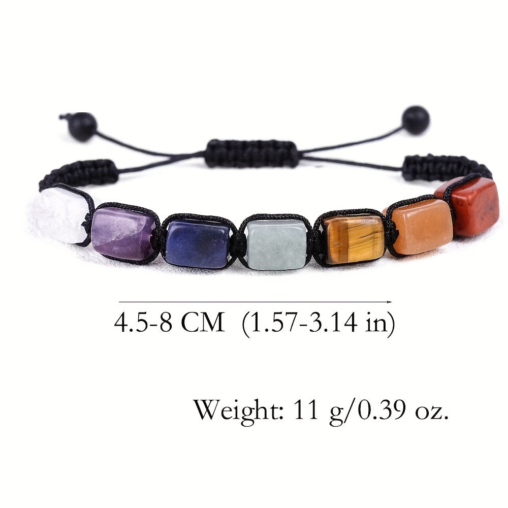 This 7 chakra stone bracelet is perfect for yoga practice and reiki healing. Crafted with natural gemstones and a braided rope design, it is ideal for women and girls.
