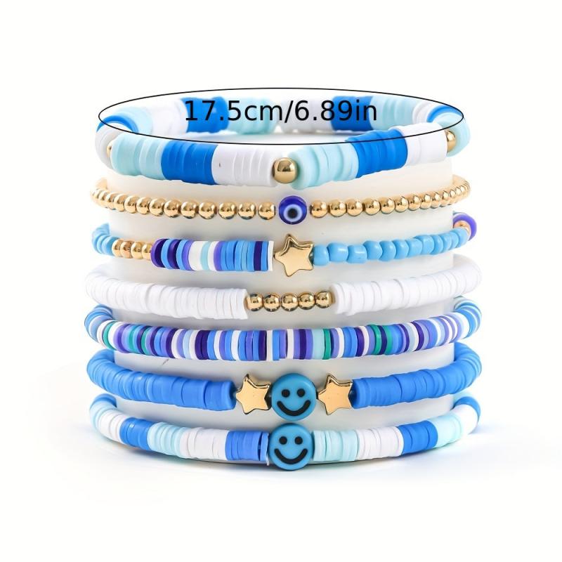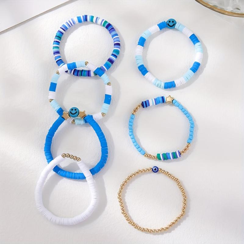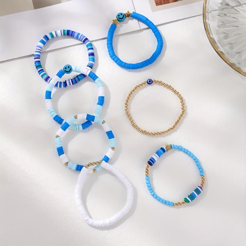 Perfect for parties and gifting, these friendship bracelets feature soft clay beads and elastic layers for easy wear.