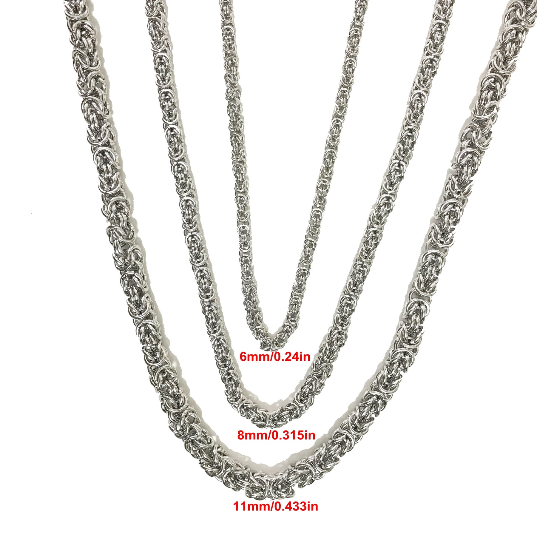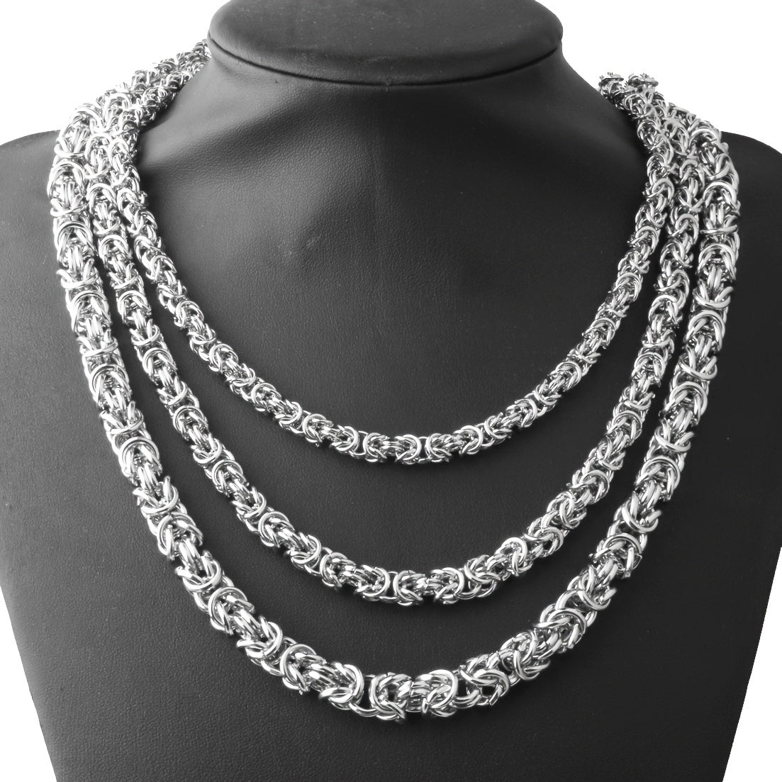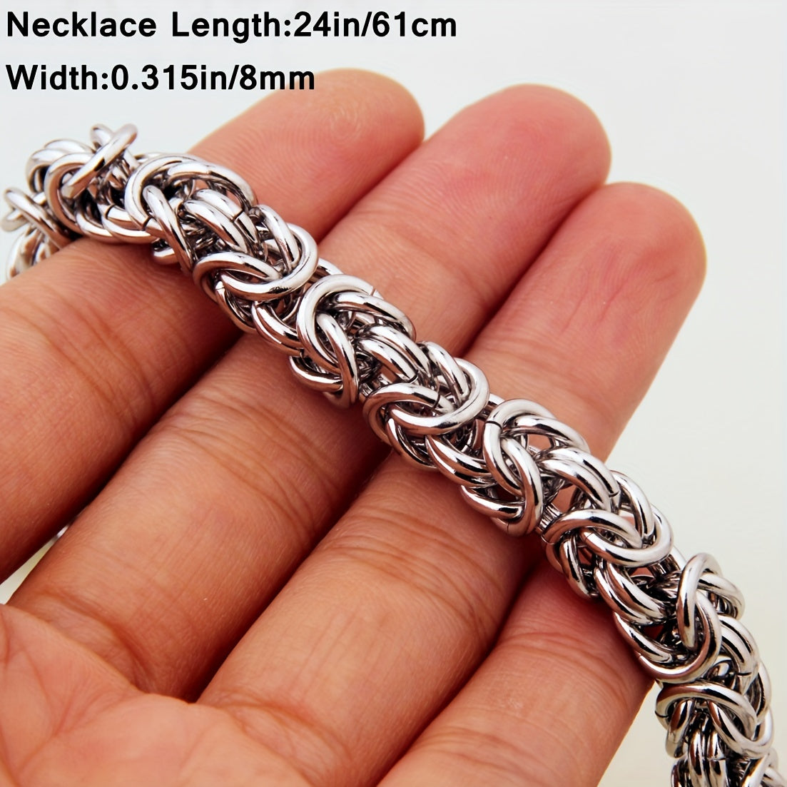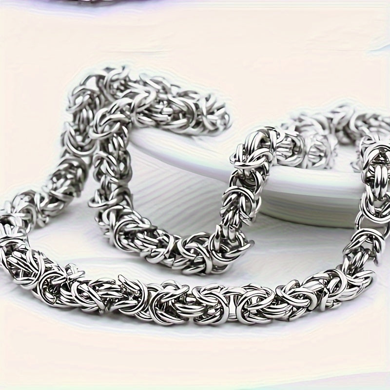 This hip hop stainless steel necklace and bracelet set features a stylish Byzantine Cuban chain design.