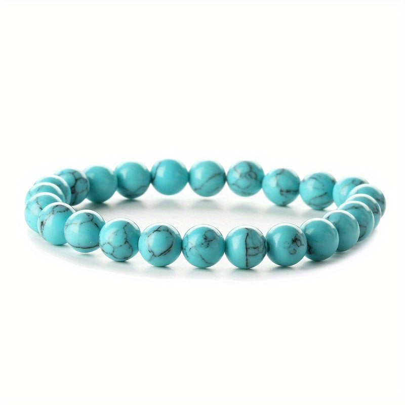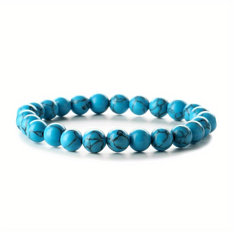 Enhance your style with this 8MM natural turquoise bead bracelet designed for men. Made with high-quality turquoise beads for a bold and unique look.