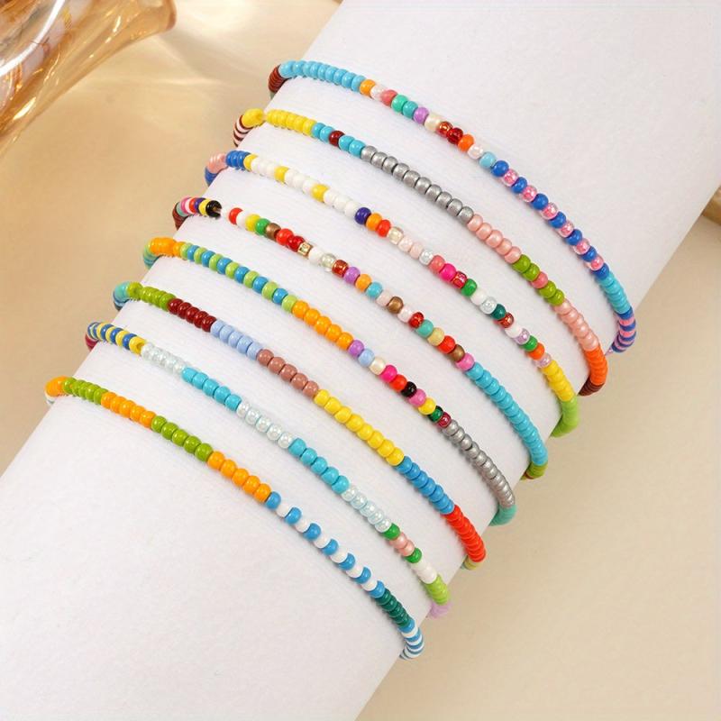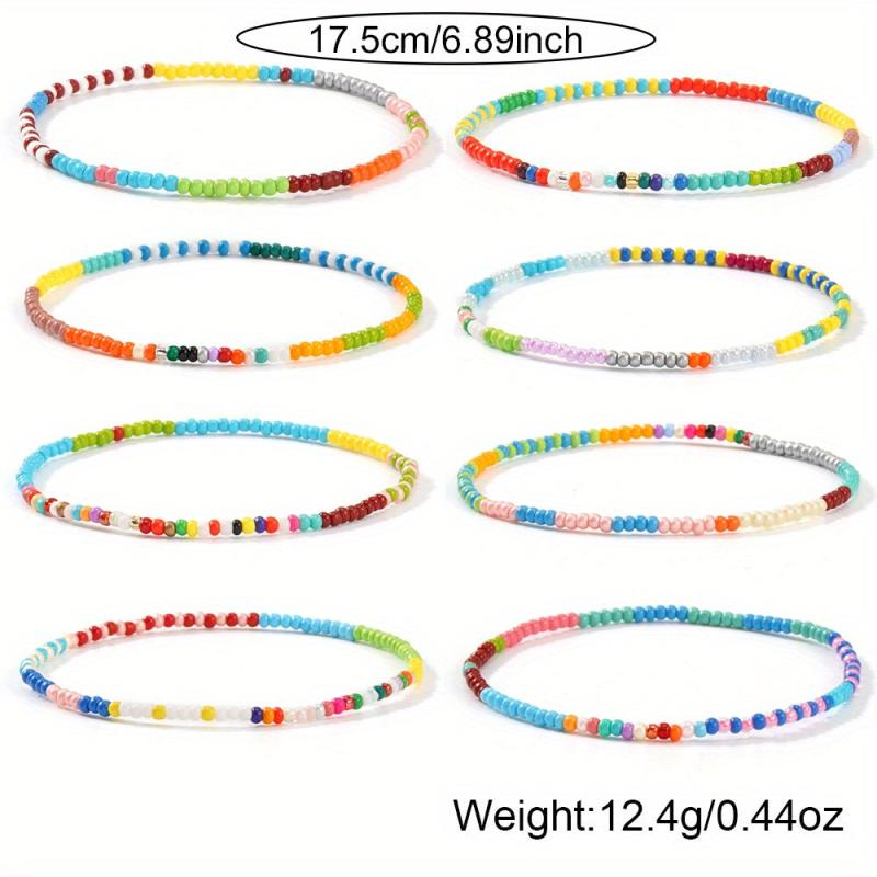 Bring a pop of color to your accessory collection with this set of 8 beaded bracelets. Perfect for stacking and wearing together, these bracelets add a fun and stylish touch to any outfit. Ideal for holidays, beach days, or everyday wear, these bracelets make a great gift choice for friends and family.