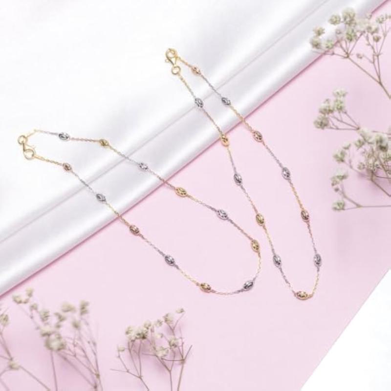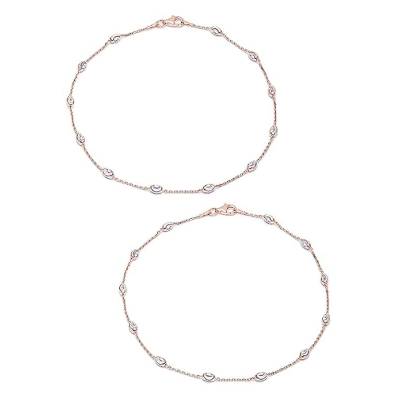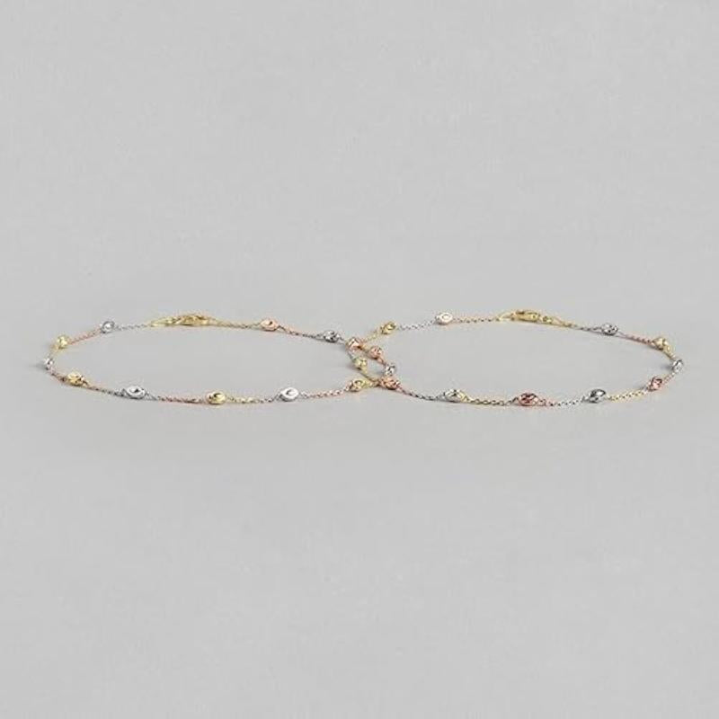 Get this pair of hypoallergenic anklets with triple tone plating and stamped 925 sterling silver beads.