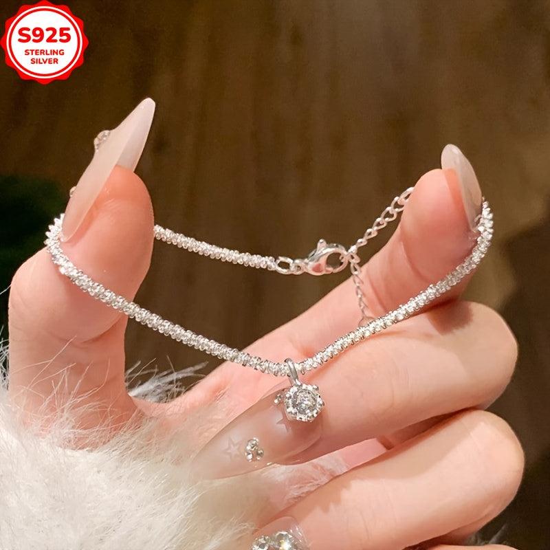 This stunning 925 sterling silver bracelet features sparkling stars and moon pendant. It is lightweight, low allergy, perfect for all occasions, and an ideal gift for someone special.