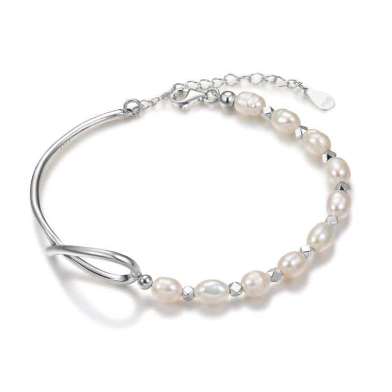 Add elegance to your look with this beautiful 925 sterling silver bracelet featuring natural pearls. Perfect for weddings and special occasions.