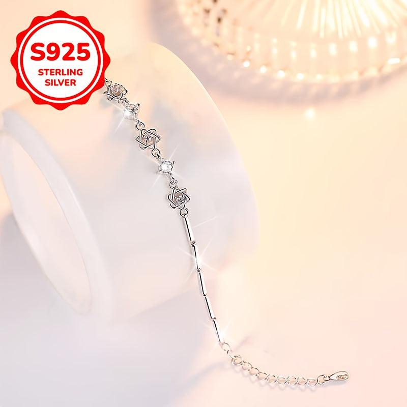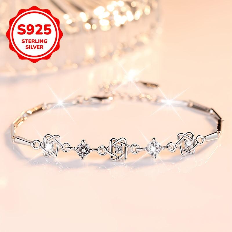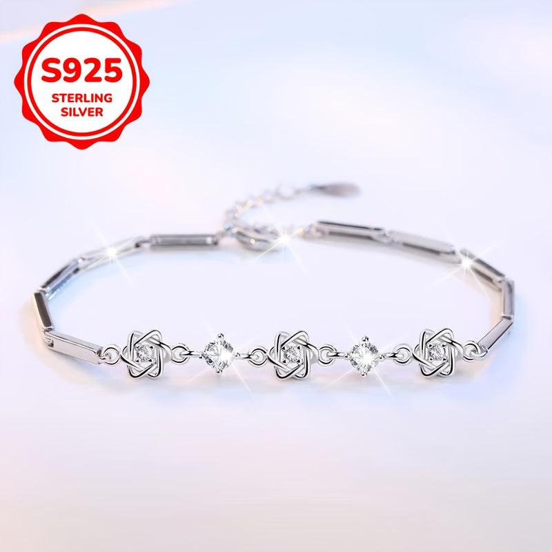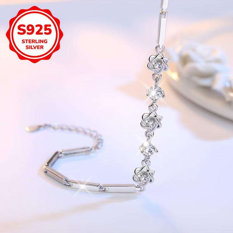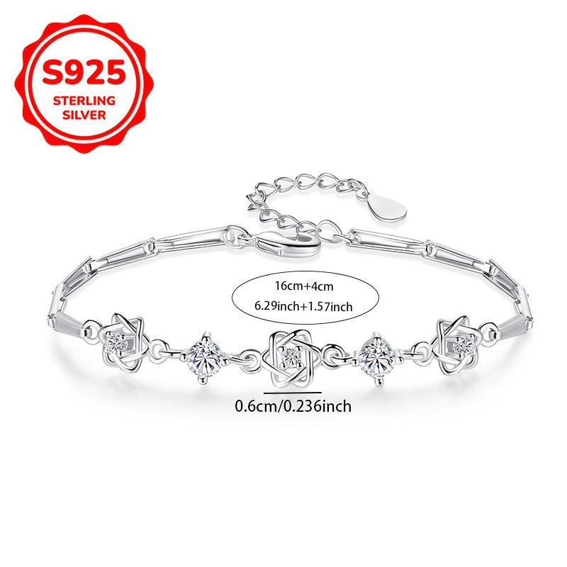 Add a touch of elegance to any outfit with this 925 sterling silver bracelet featuring sparkling cubic zirconia. Lightweight and versatile, perfect for daily wear, weddings, and beaches.