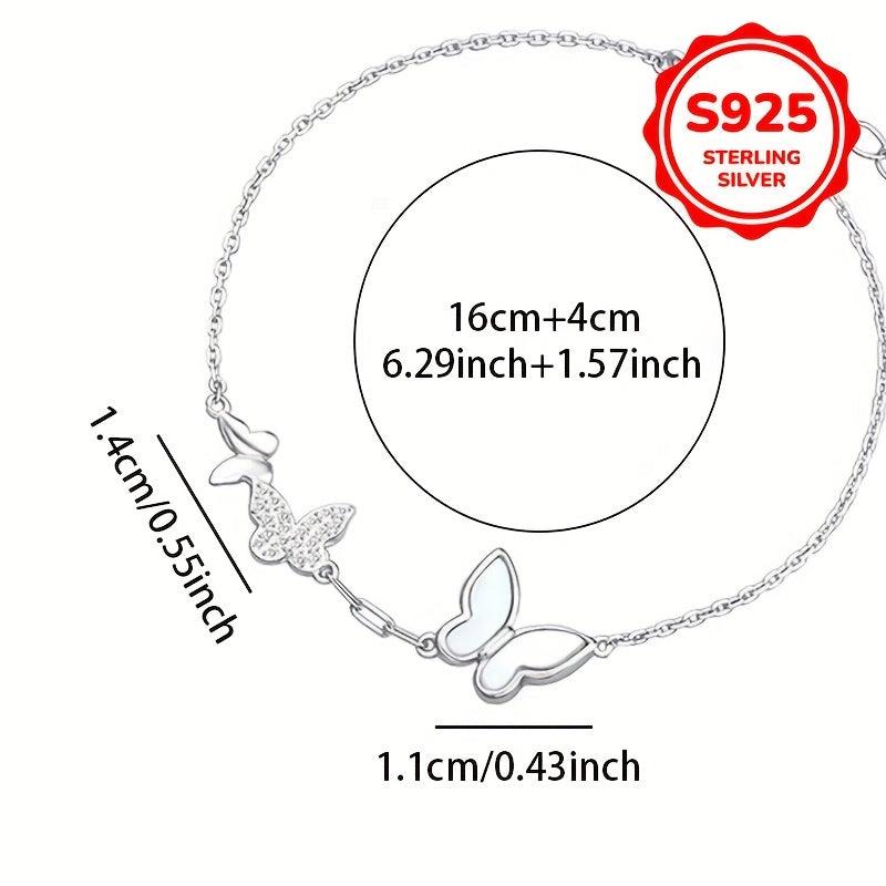 This 925 sterling silver butterfly bracelet features cubic zirconia stones, making it a perfect gift for women, couples, and friends. It is versatile, lightweight, and ideal for daily wear.