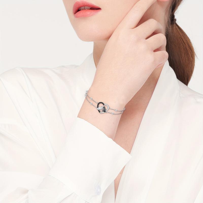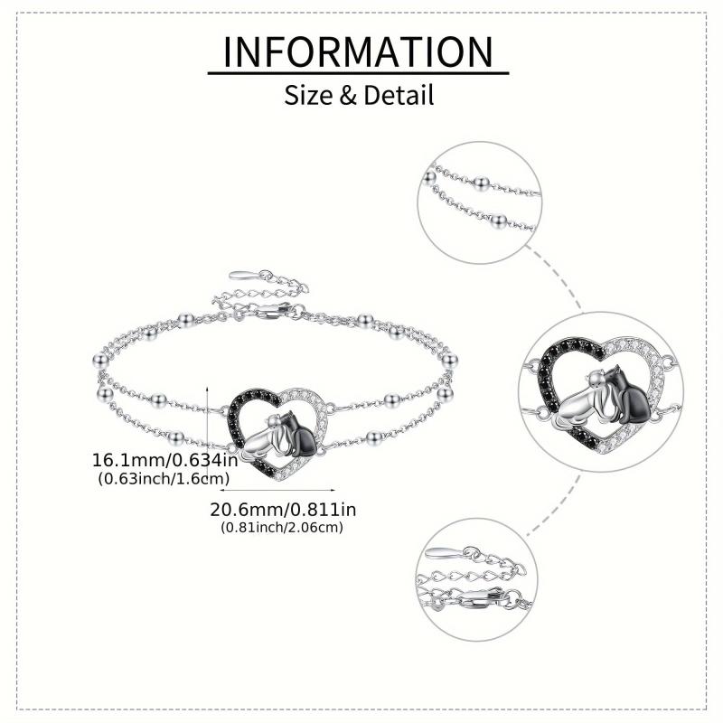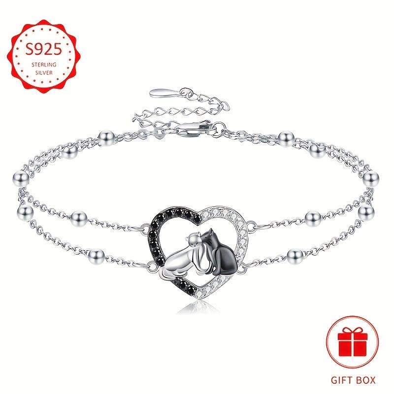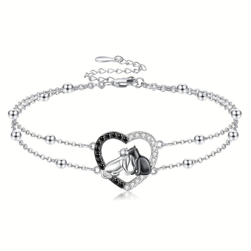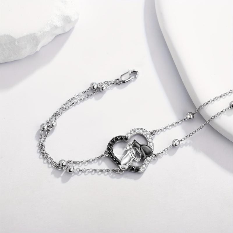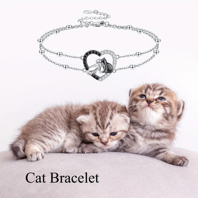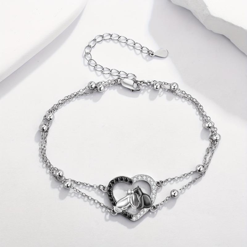 This beautiful cat bracelet is made of 925 sterling silver, featuring a heart and double layered chain design. It is a perfect piece of jewellery for women who love cats.