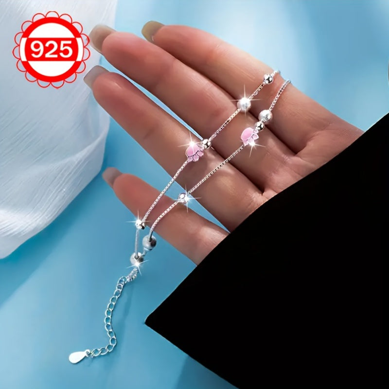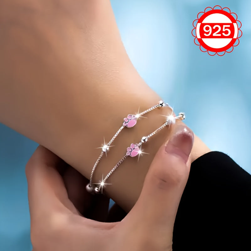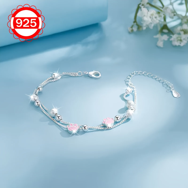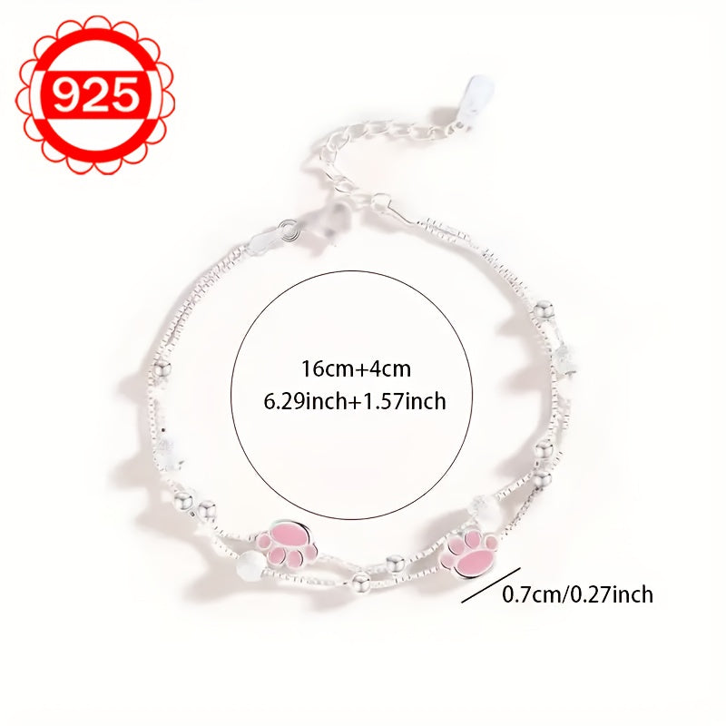 This 925 silver bracelet features a charming cat paw design with matte beads, perfect for festivals, beach, and vacation. It is lightweight and weighs only 3.8g.