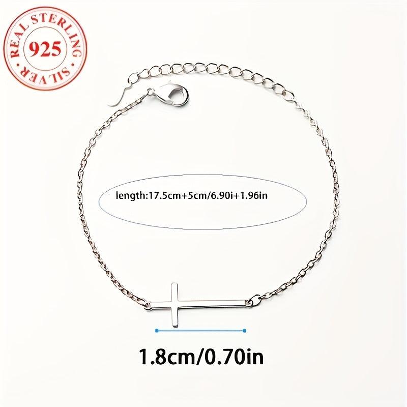 This 925 sterling silver cross bracelet features a bohemian style dainty chain with intricate design, perfect for daily wear and gifting. It is an everyday accessory that adds a touch of elegance to any outfit.