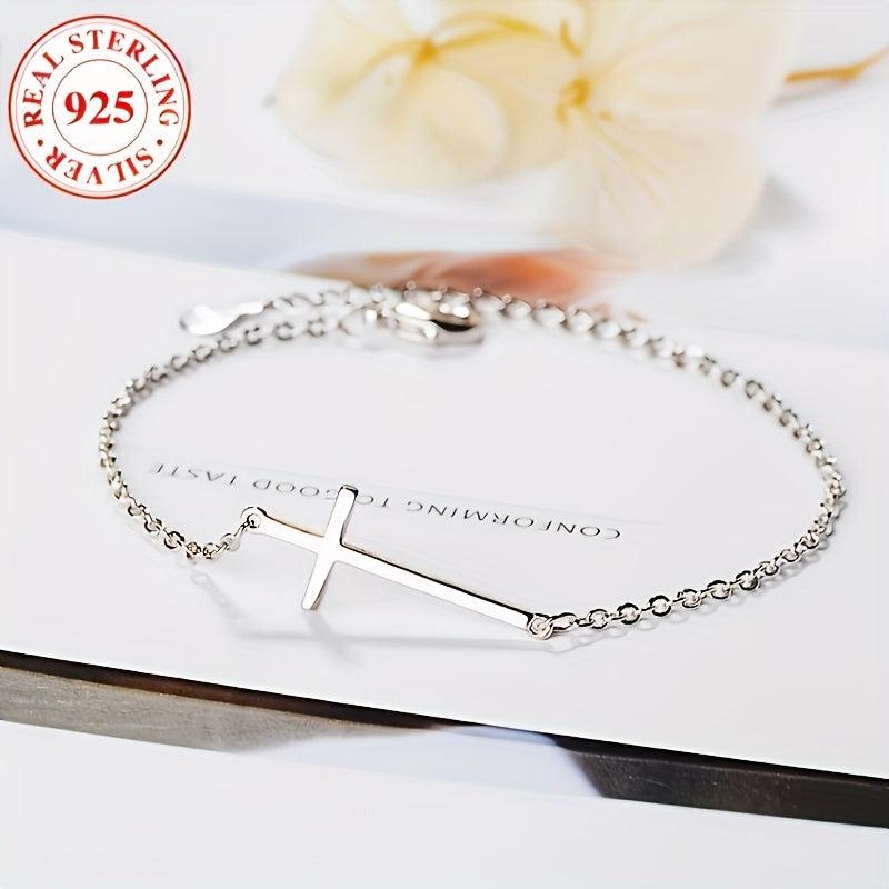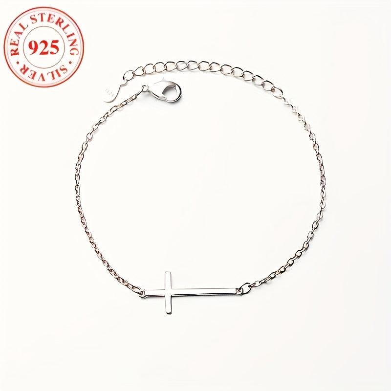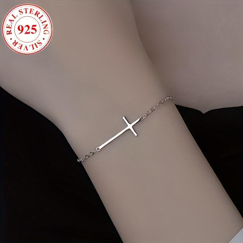 This 925 silver cross bracelet features a dainty pendant, perfect for daily wear with a boho style. The adjustable chain ensures a comfortable fit.