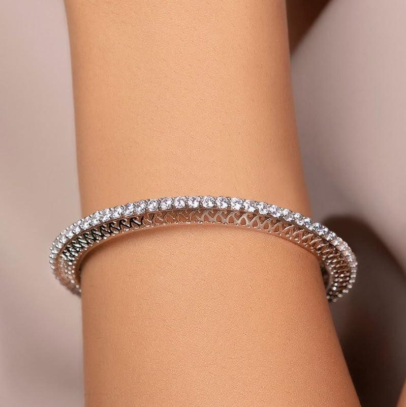 Stunning bangle made from 925 sterling silver with sparkling cubic zirconia stones. Rhodium plated for a lasting shine.