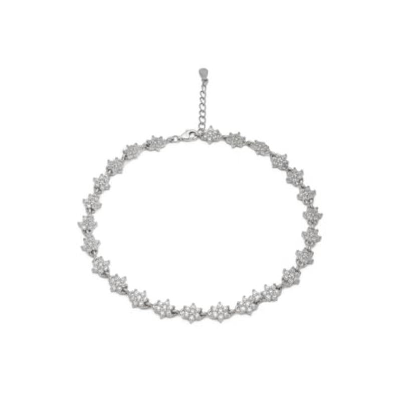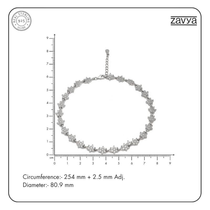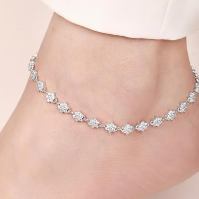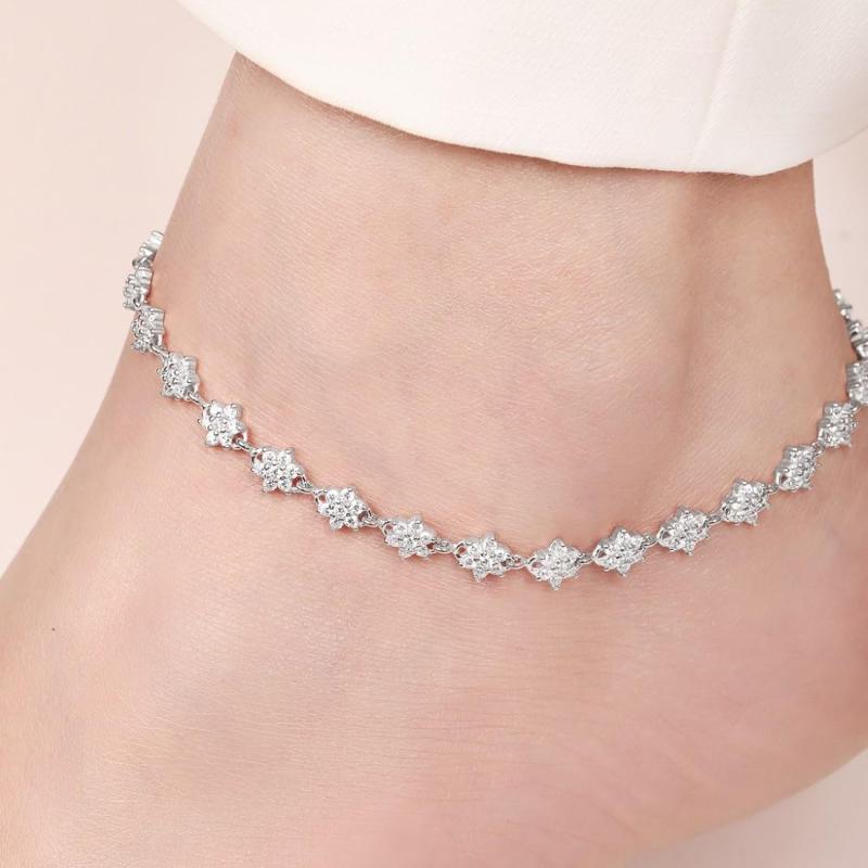 Beautiful pair of anklets made of hypoallergenic 925 sterling silver with cubic zirconia floral design and rhodium plating. Each anklet is stamped for authenticity.