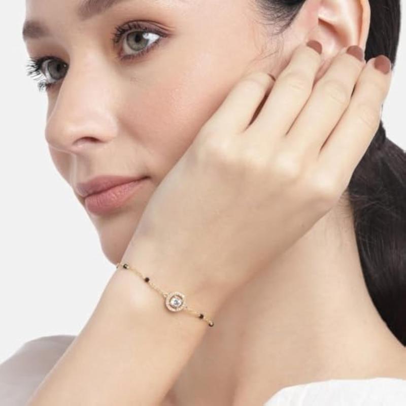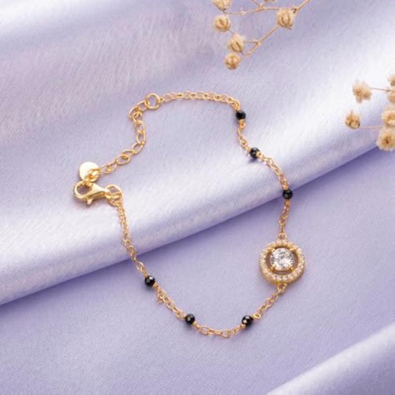 This stunning circular solitaire bracelet is made of 925 sterling silver and features a sparkling cubic zirconia stone. It is a perfect gift for girls and mothers with the '925' stamp for authenticity.