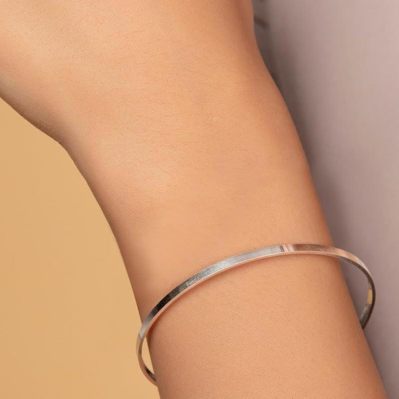 Elegant and stylish bangle made with 925 sterling silver and sparkling cubic zirconia. Rhodium plated for a sleek finish.