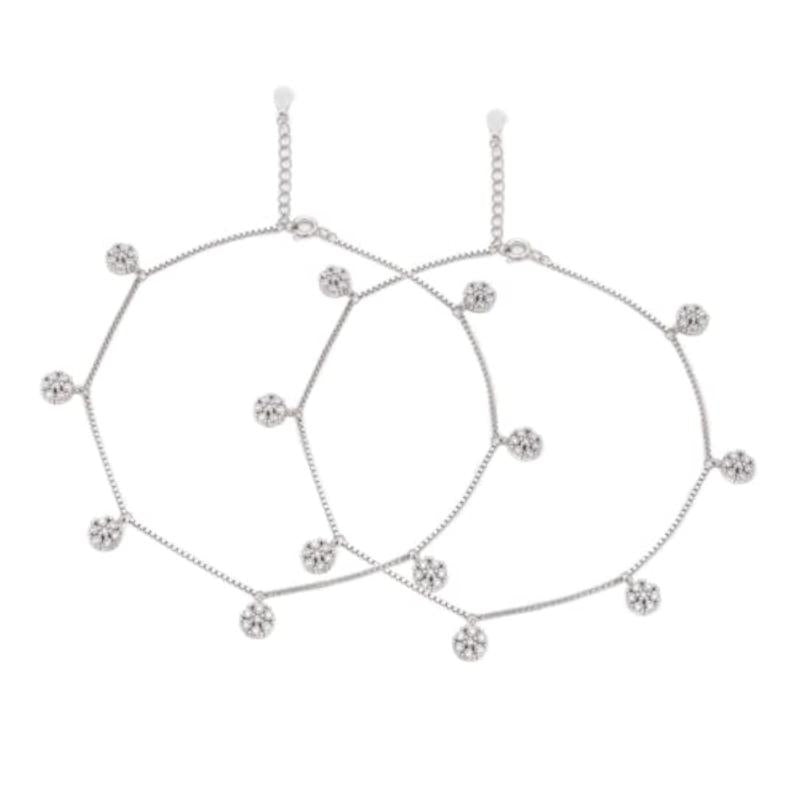 Elegant pair of anklets featuring floral rose design with cubic zirconia stones. Hypoallergenic and perfect for all occasions.