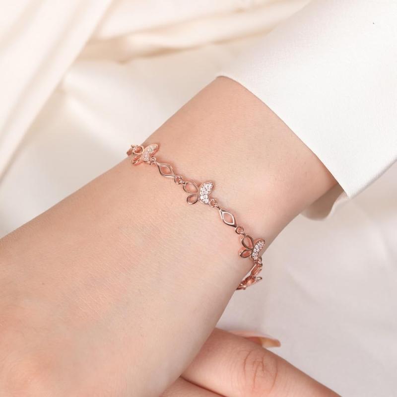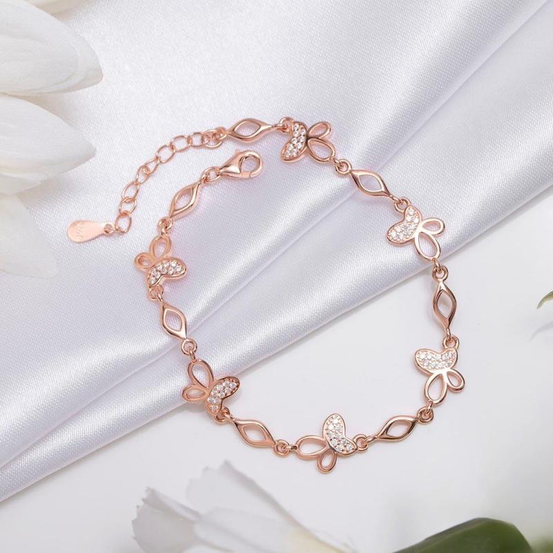 Adorn your wrist with this stunning 925 sterling silver bracelet featuring radiant cubic zirconia stones and a delicate rose plating. The adjustable design ensures a perfect fit.