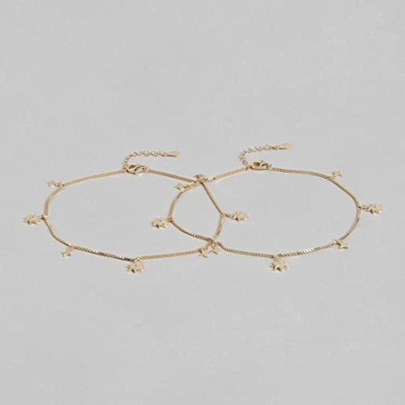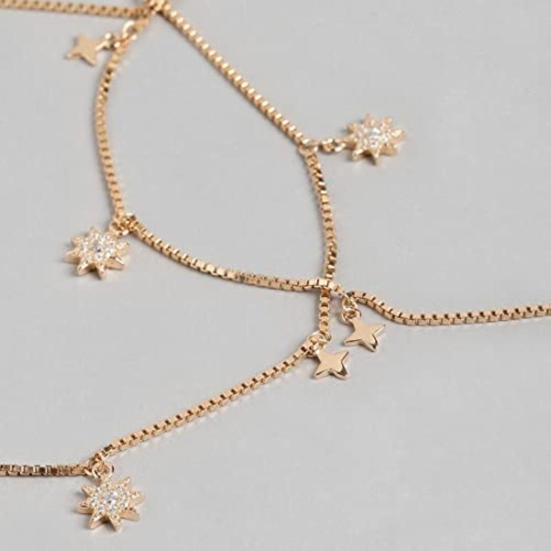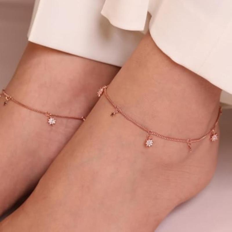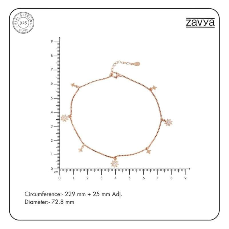 Elevate your style with this stunning pair of 925 sterling silver anklets featuring dual star charms adorned with cubic zirconia stones and rose plating.