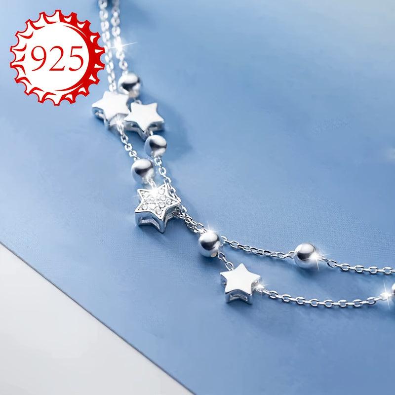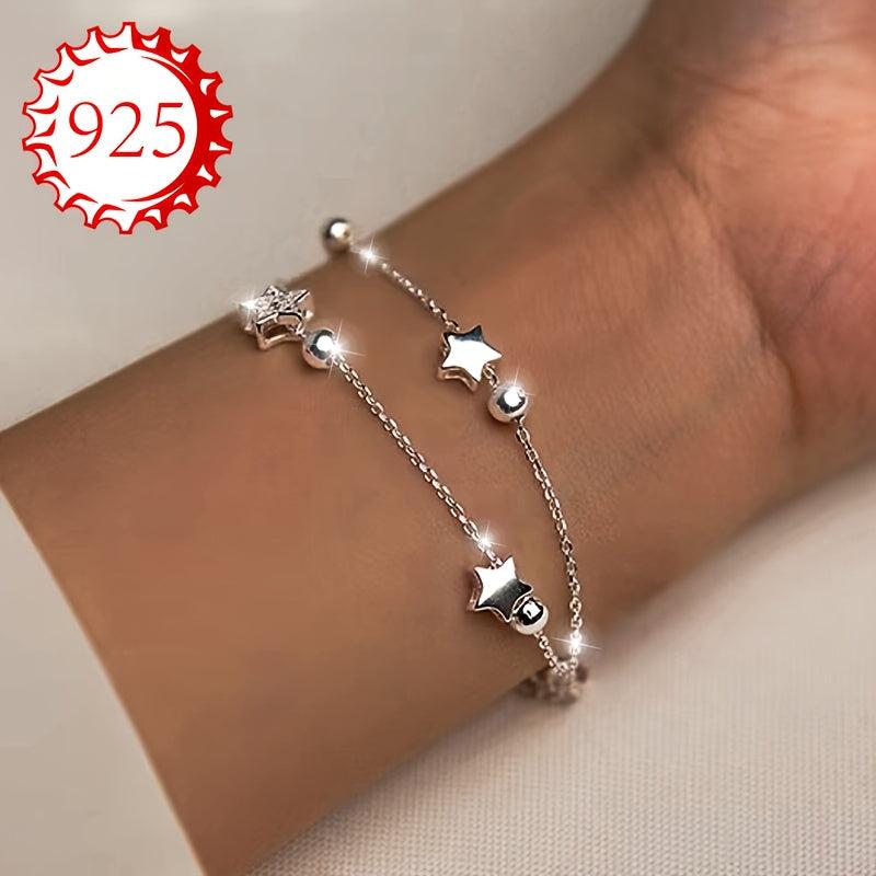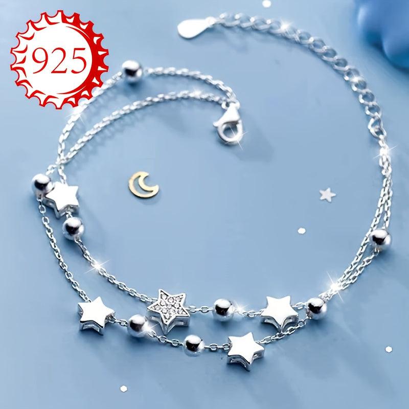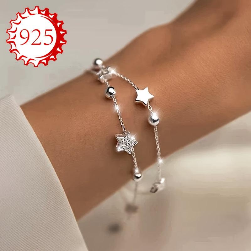 This bracelet is made of 925 silver and features a double layer design with sparkling stars and beads. It's perfect for all seasons and occasions like gifting, weddings, beach vacations.