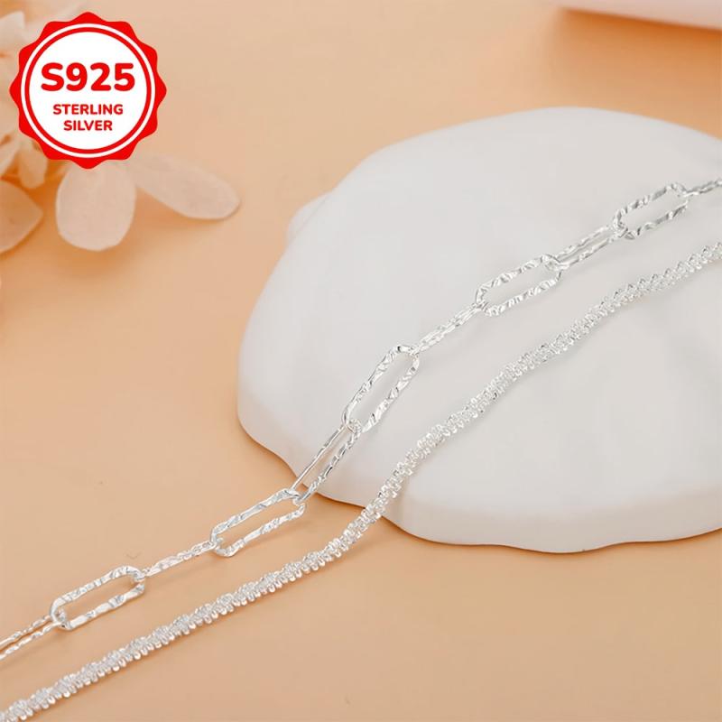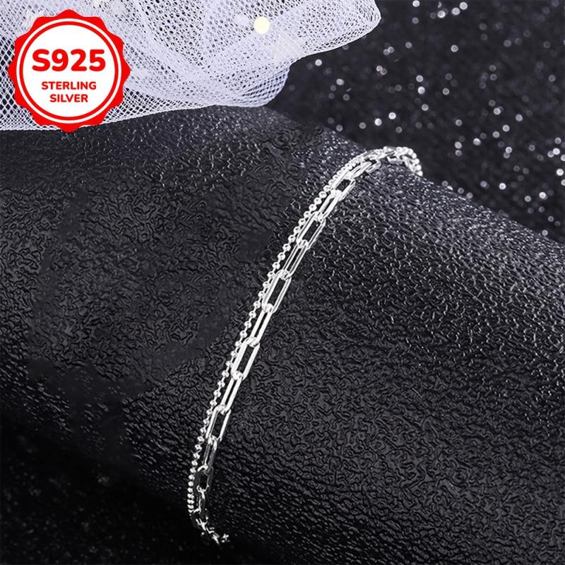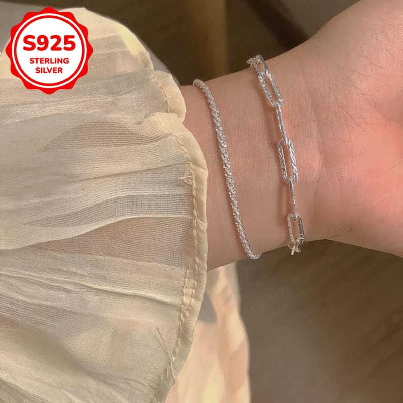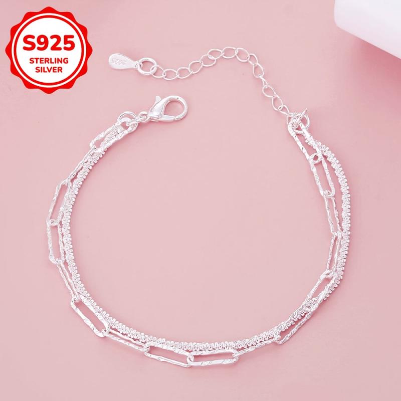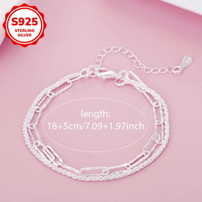 Hypoallergenic, minimalist 925 sterling silver bracelet with double layers, starry sky design, glittery chain. Light and fashionable, perfect gift for women.