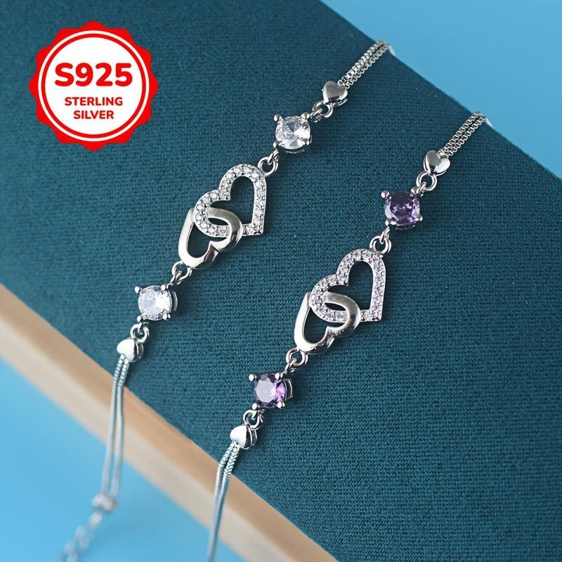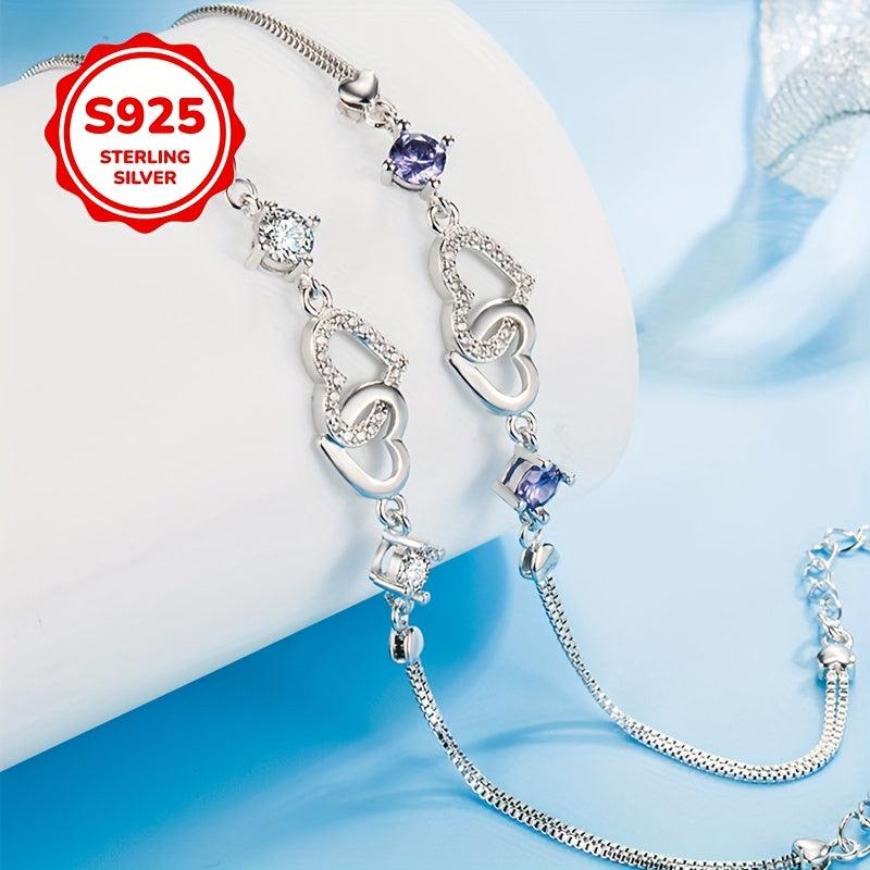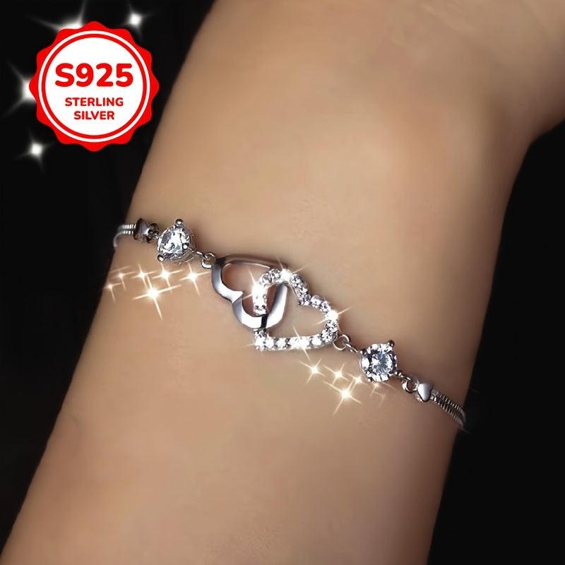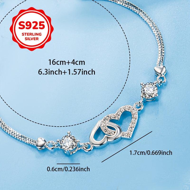 This 925 silver bracelet features a double love heart design, perfect for adding a touch of elegance to any outfit. It is allergy-free and crafted with high-end materials for a luxurious look.