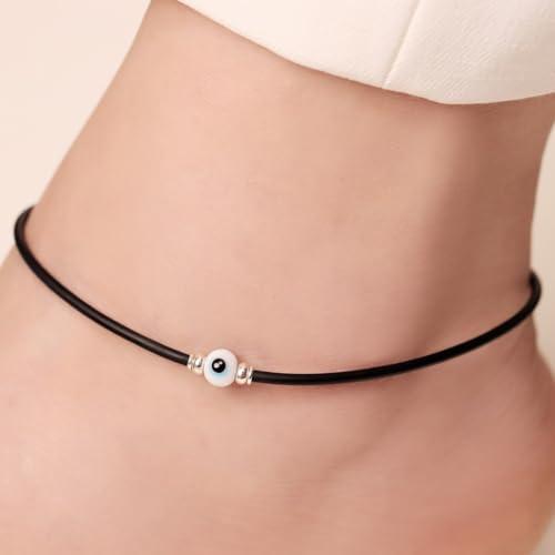 Beautiful pair of 925 sterling silver anklets with coloured stones and evil eye design. Rhodium plated for durability and hypoallergenic. Perfect for adding a touch of charm to your outfit.