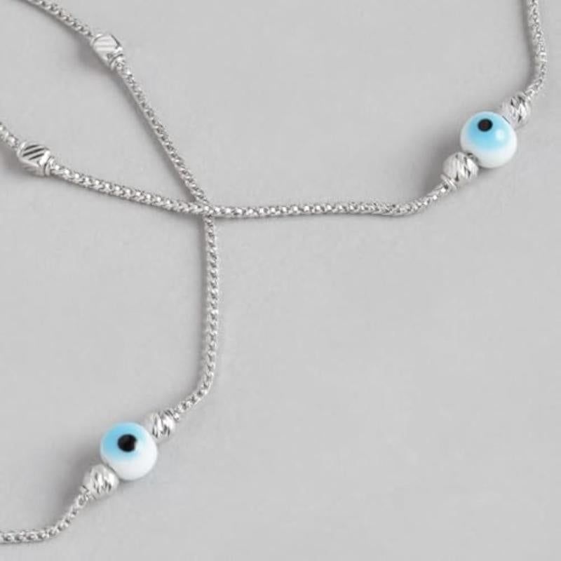 Hypoallergenic anklet set with evil eye beads. Made of 925 sterling silver with rhodium plating for durability.