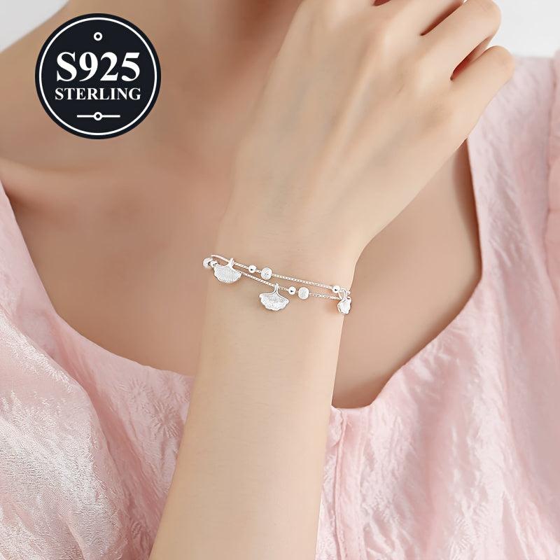 This double layer ginkgo leaf pendant is made of 925 sterling silver, hypoallergenic and oxidation-resistant. It comes with a storage box, perfect as a gift for women, couples, and friends.