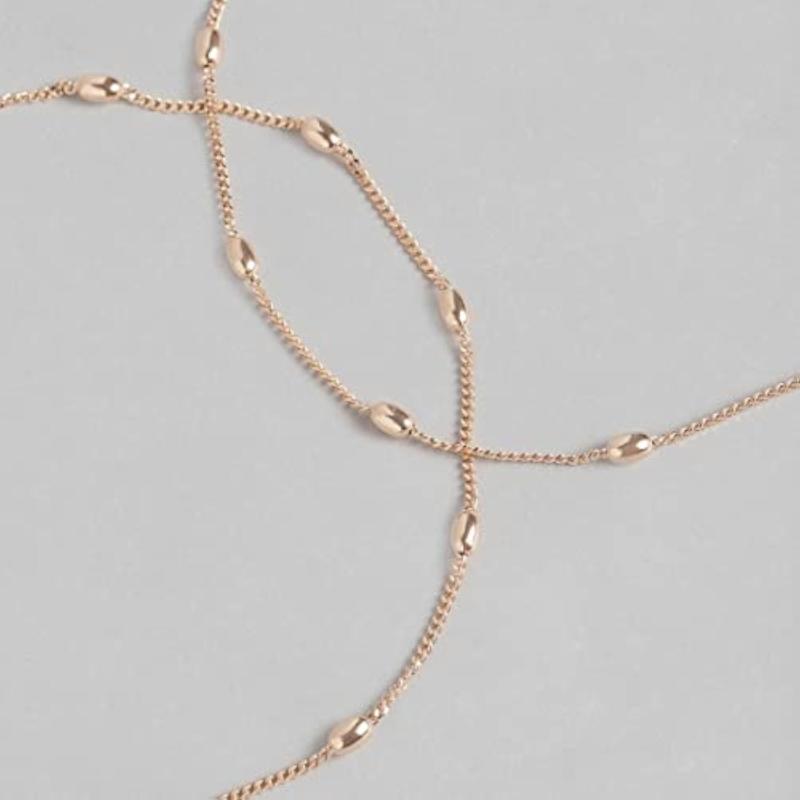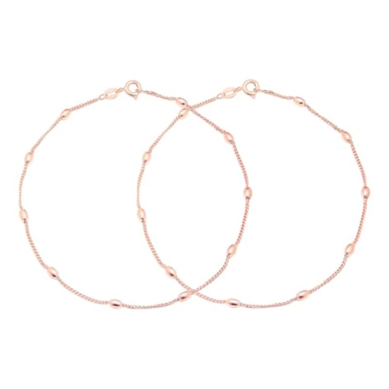 Elevate your style with this pair of 925 sterling silver anklets featuring golden beads and rose plating chain. Each anklet is hallmarked for authenticity.