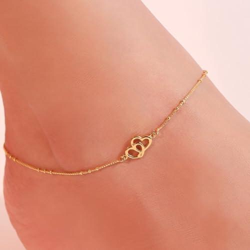 Elegant pair of 925 sterling silver heart chain anklets, hypoallergenic and perfect for sensitive skin. Each anklet features a heart charm and comes with a stamp of authenticity.