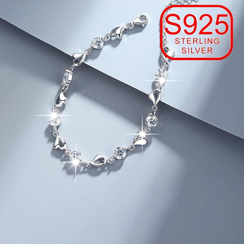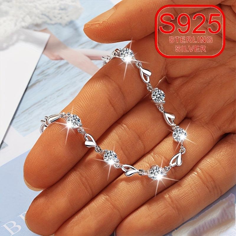 This 925 sterling silver heart-shaped geometric bracelet is designed for low allergy and anti-tarnish properties. Ideal for daily wear, weddings, beach vacations, and special occasions.