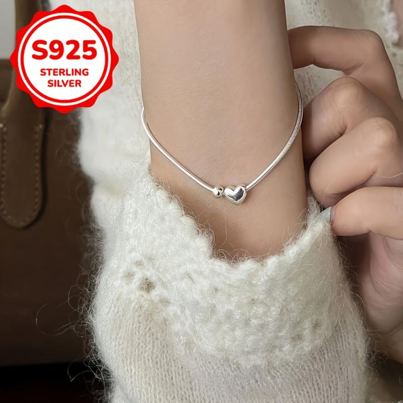 This vintage 925 silver heart pendant bracelet features small beads, making it perfect for everyday wear. An ideal gift for any season.