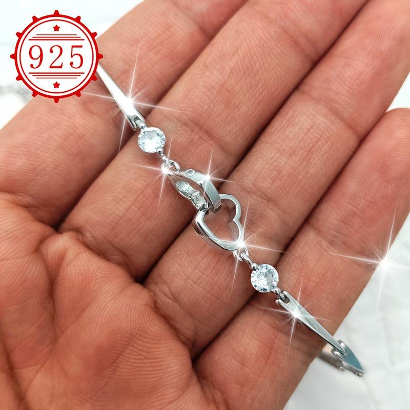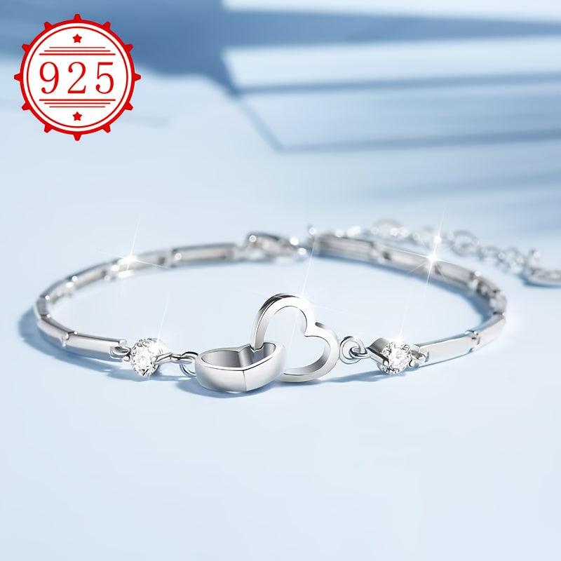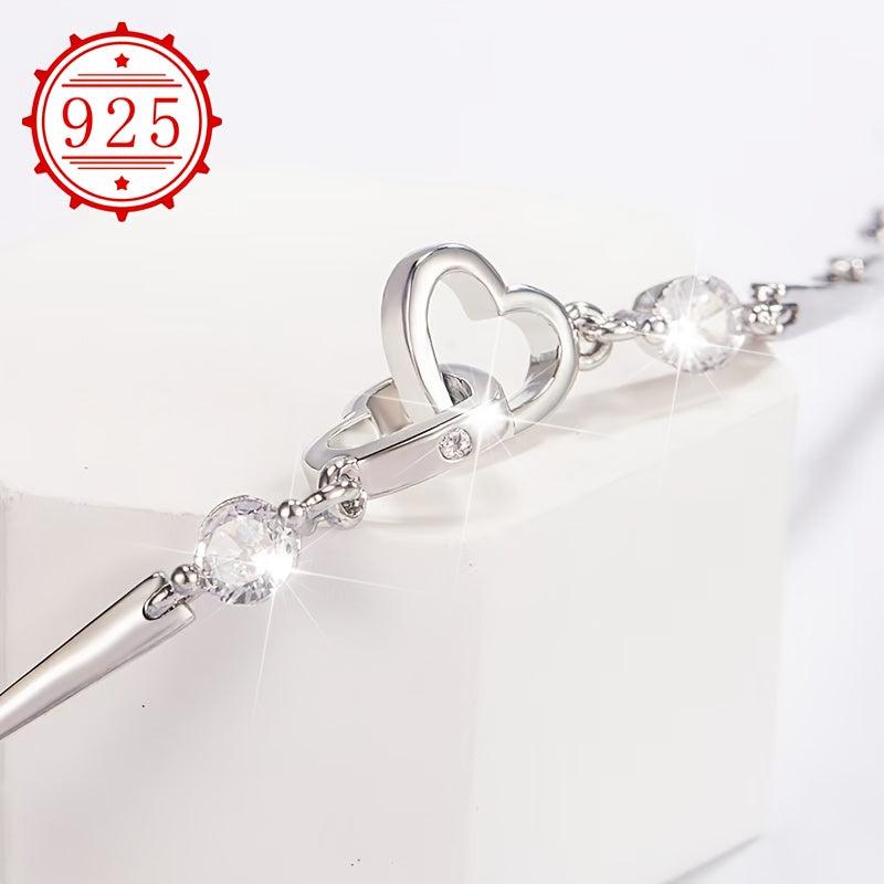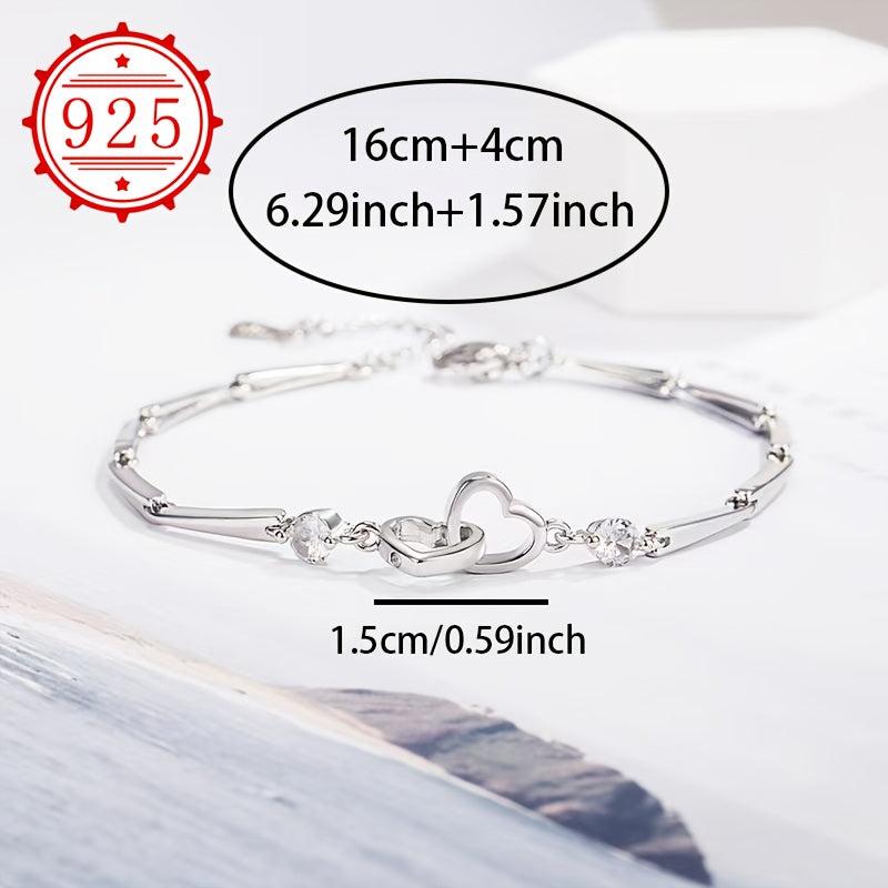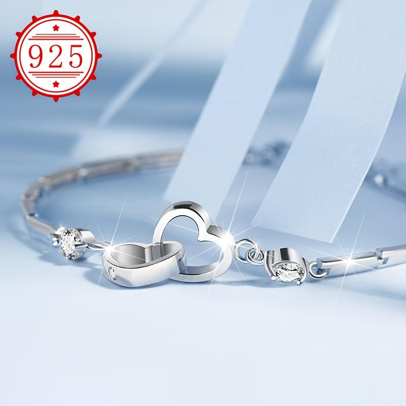 This 925 silver low allergy bracelet features a bright heart to heart design, perfect for men and women, couples, or friends. It is a stylish accessory that adds a touch of elegance to any outfit.