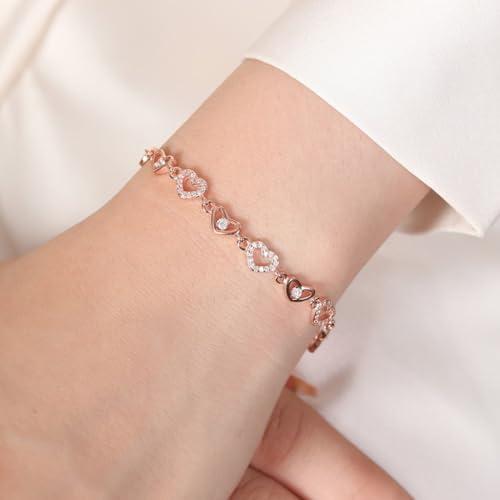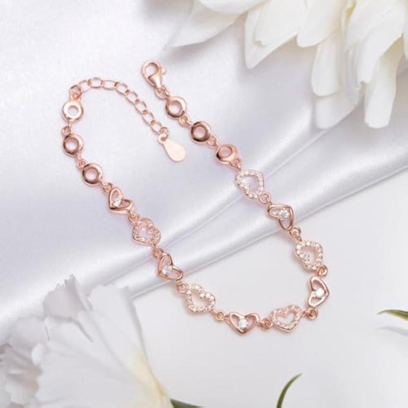 Adorn your wrist with the Showered with Love Multi-Heart Rose Plated Bracelet. This adjustable bracelet is crafted from 925 sterling silver, making it a perfect gift for your loved one.