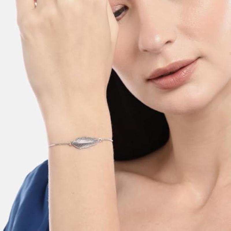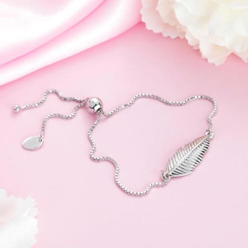 This charming drawstring bracelet is made of 925 sterling silver with a leafy design. Rhodium plated for extra shine and durability. Perfect gift for girls, featuring a special stamp of authenticity.