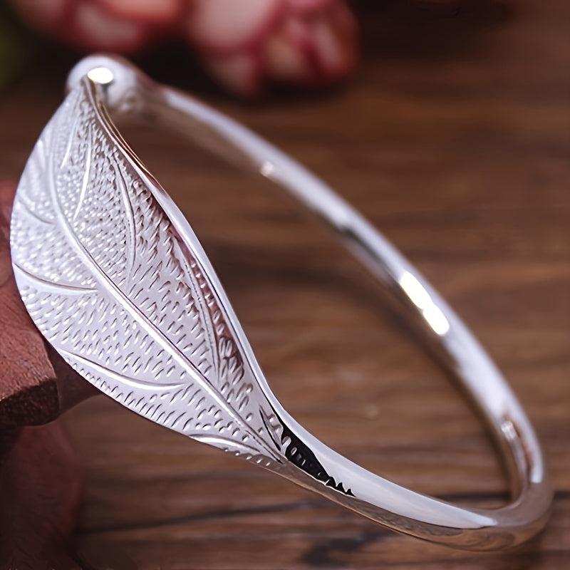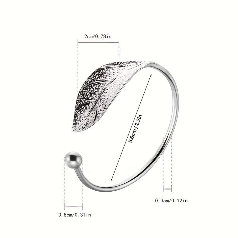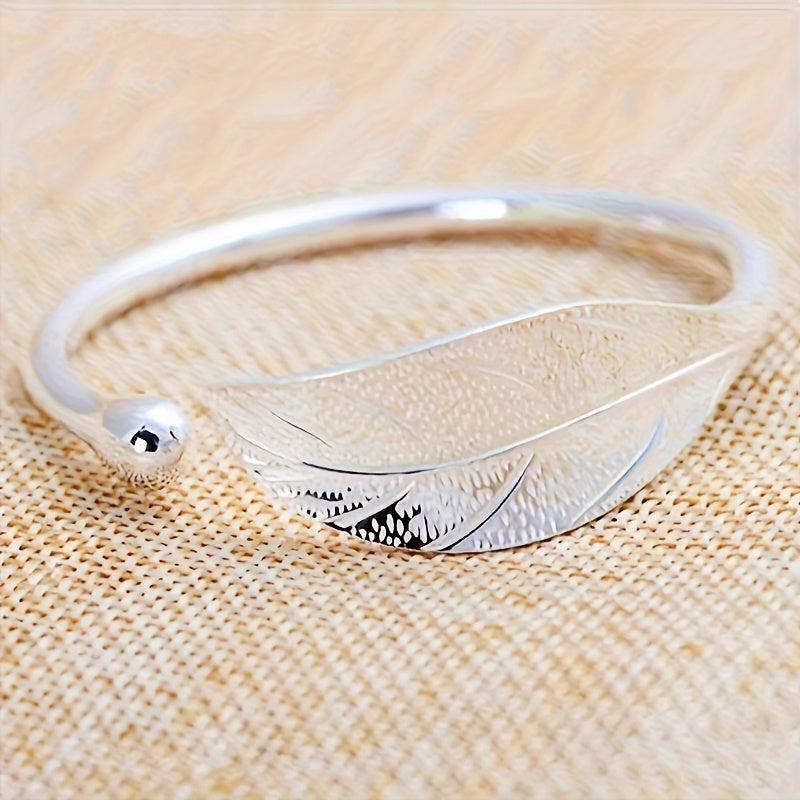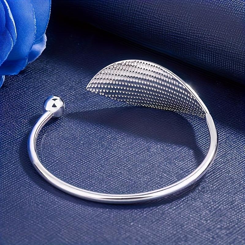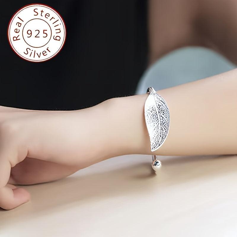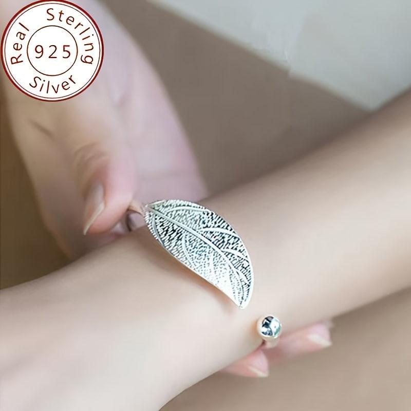 Elegantly designed 925 silver bracelet in the shape of a leaf, perfect for daily wear and special occasions. Adds a touch of sophistication to your outfit.