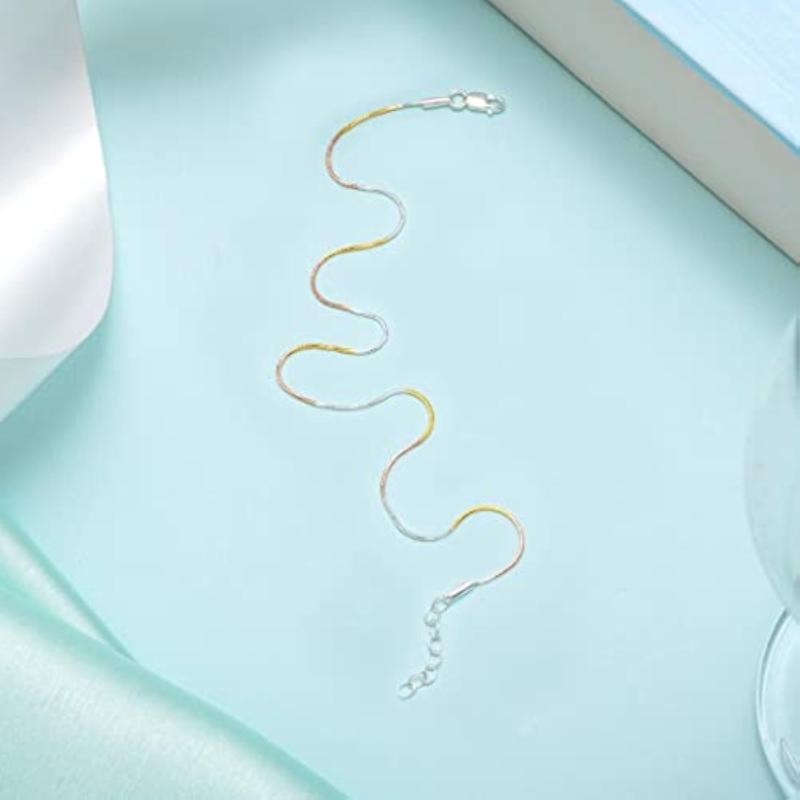 Add a touch of elegance to your ankle with this 925 sterling silver anklet featuring triple tone plating. The hypoallergenic material ensures comfort and style.