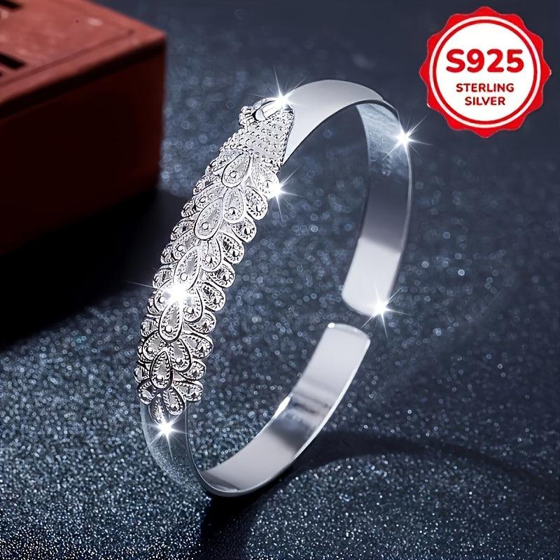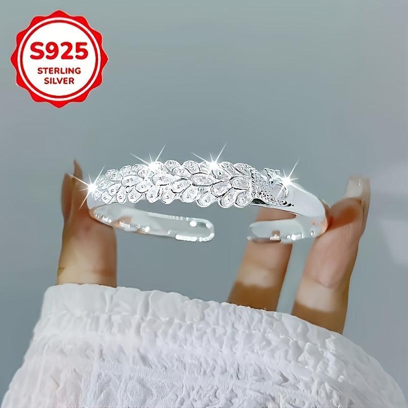 This stunning 925 silver open bracelet features a sparkling floral design that is perfect for daily wear or special occasions. It is adjustable to fit most wrist sizes and makes a great gift for any woman in your life.