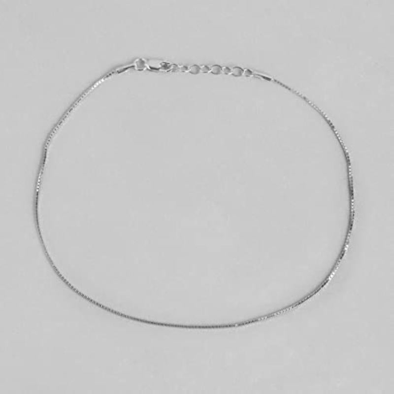 Elegant and versatile anklet made of 925 sterling silver with rhodium plating. Hypoallergenic and comfortable to wear. Features stamp of authenticity.