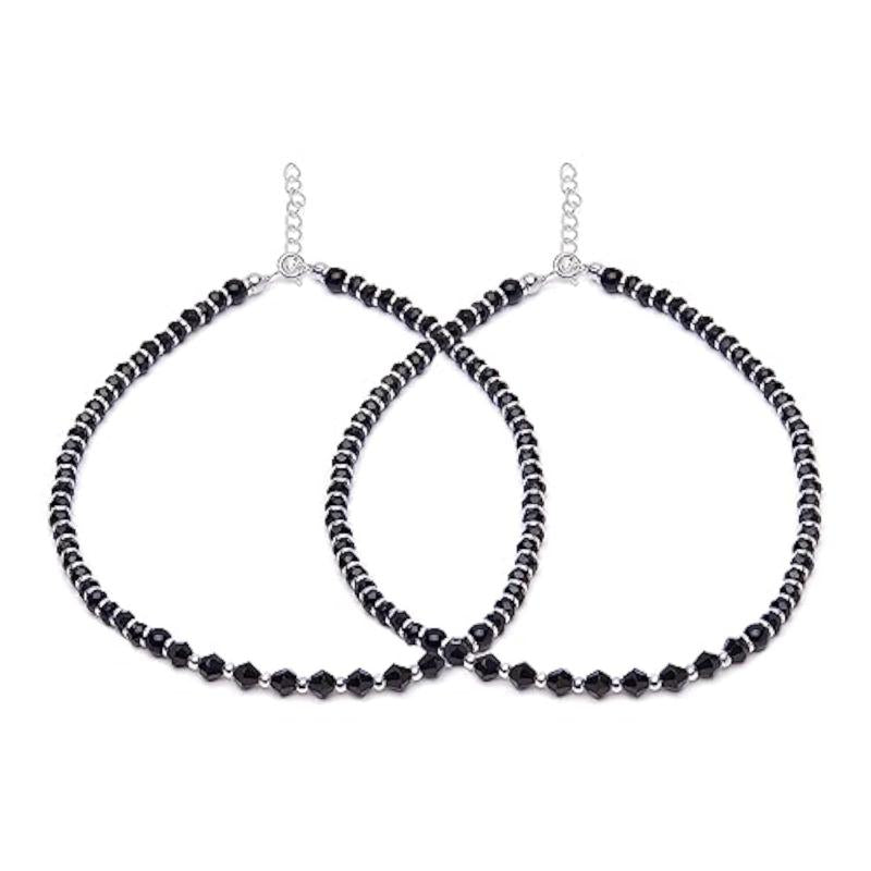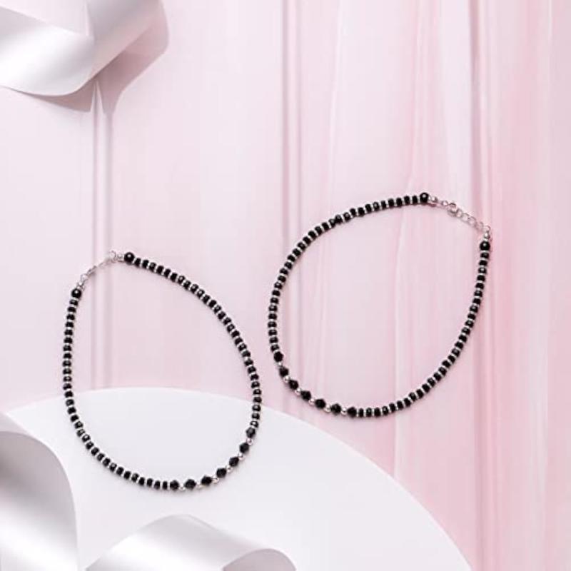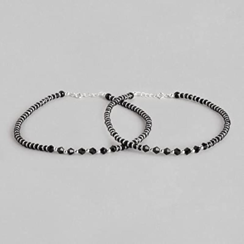 Enhance your ankle with this beautiful pair of 925 sterling silver anklets, featuring a rhodium plated finish and intricate beaded design. Each anklet is hallmarked with 925 for authenticity.