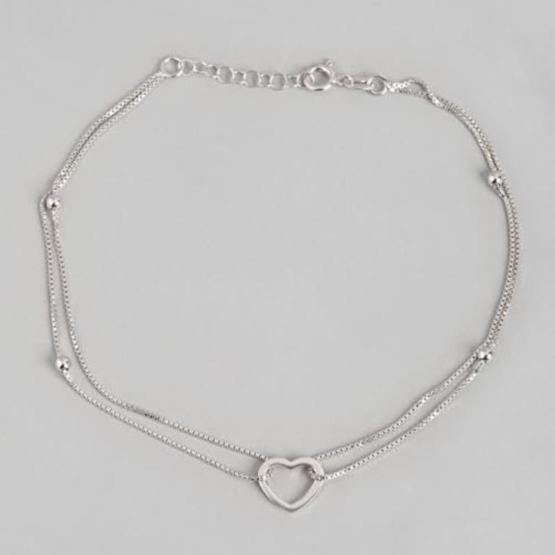 Adorn your ankle with this elegant heart anklet made of 925 sterling silver. The anklet is rhodium plated for a shiny finish and features a single heart charm. It comes with a 925 hallmark for authenticity.