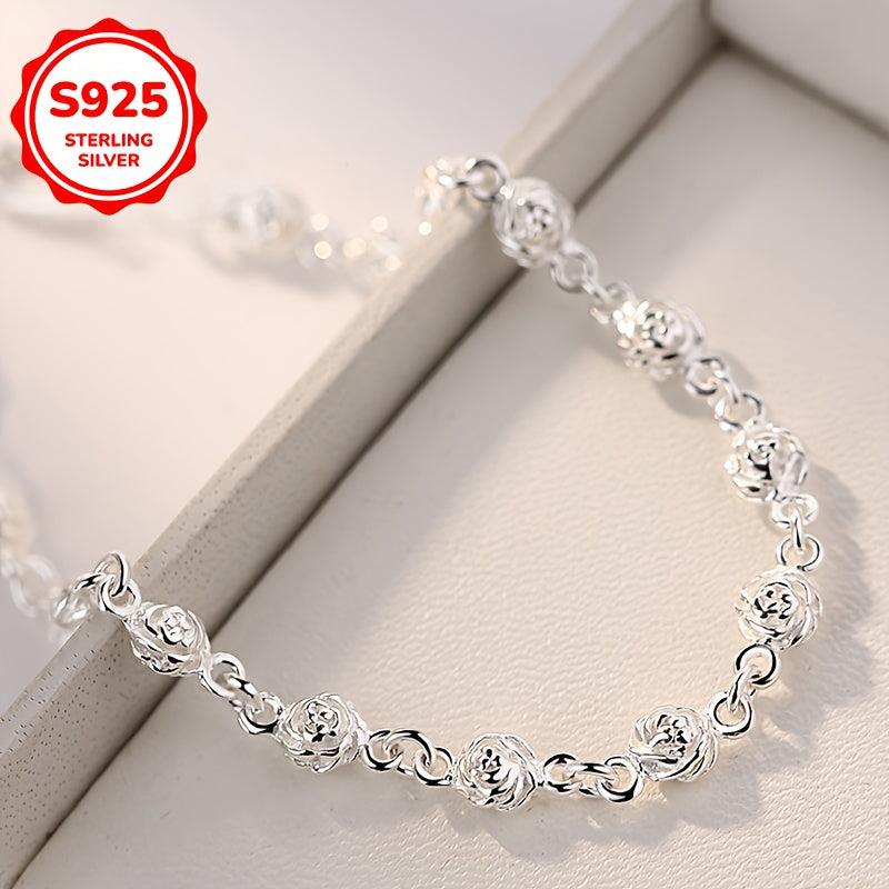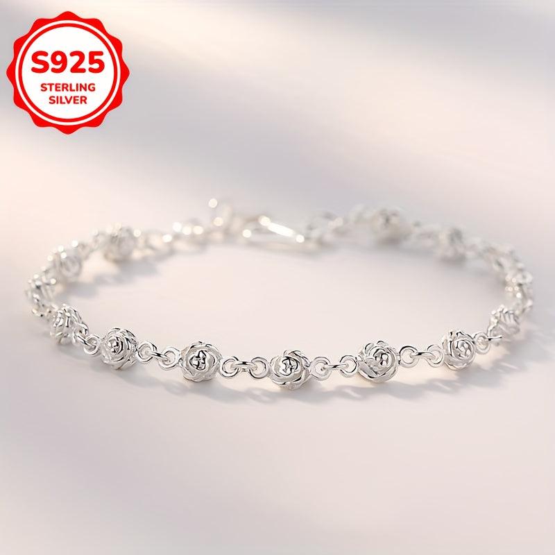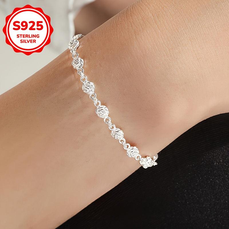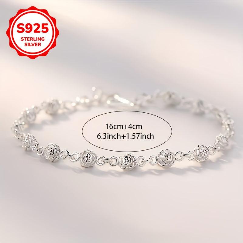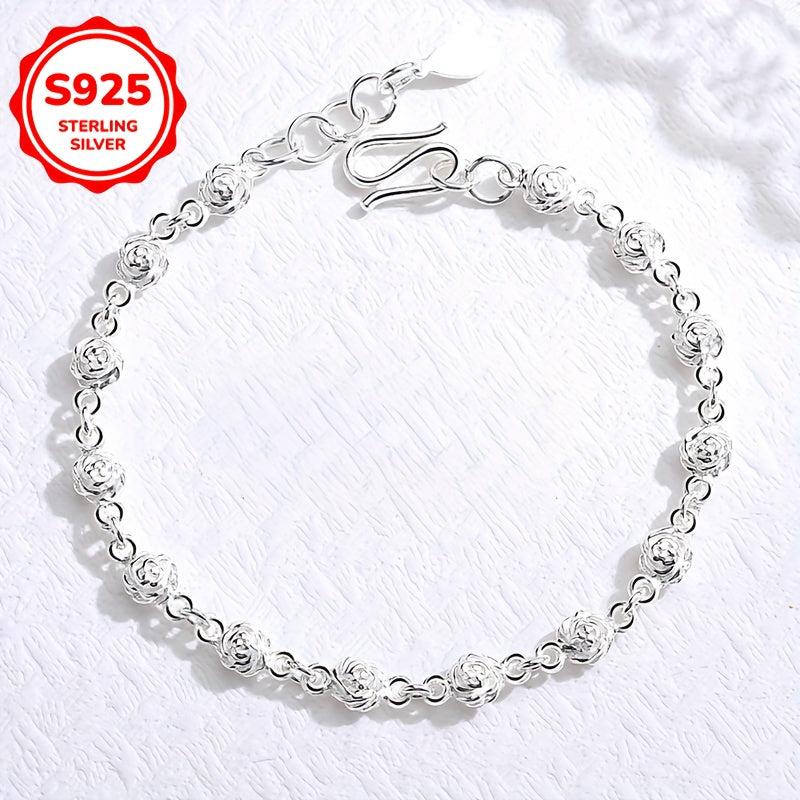 Elevate your style with this stunning 925 sterling silver rose bracelet. Featuring a bohemian design, adjustable clasp, and perfect for women's jewelry collection.
