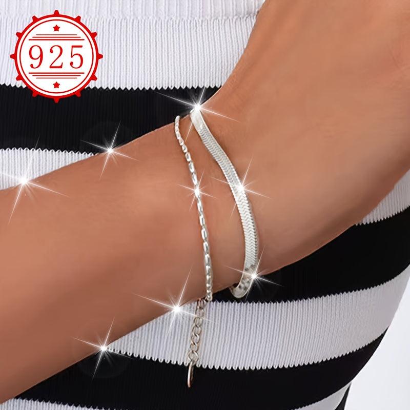 This 925 silver snake chain bracelet is perfect for women who love bohemian style. It is low allergy, durable, and tarnish resistant, making it ideal for daily wear, weddings, beach vacations, and more.