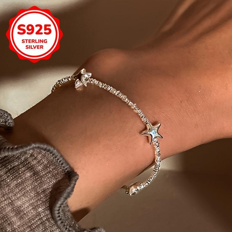 This 925 silver bracelet features sparkling stars and moon charms, making it perfect for all seasons and holidays. It's an ideal gift for couples.